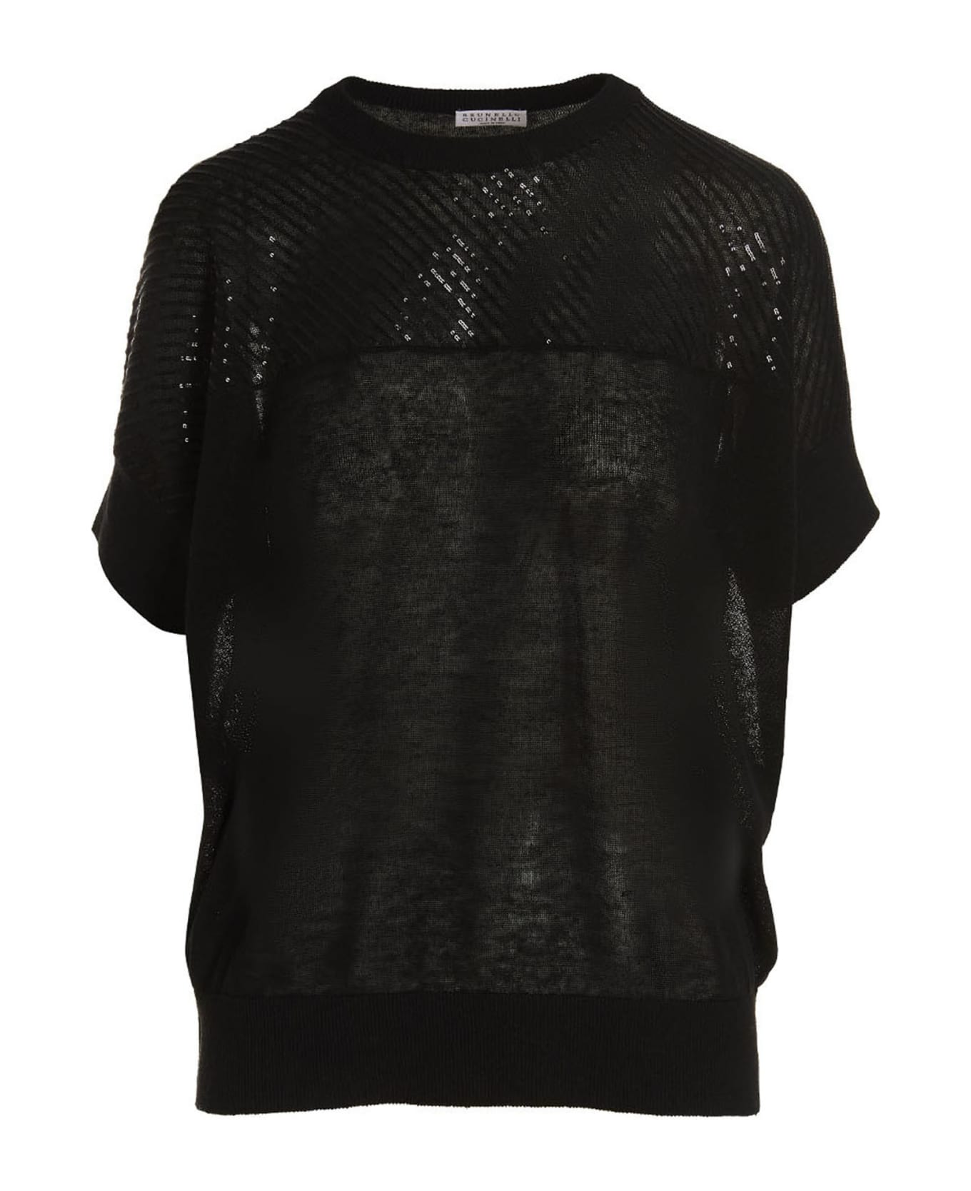 Linen blend sweater with sequin appliqué on the front upper part, a crewneck, and short cuffed sleeves. Composition: 85% linen 15% polyamide