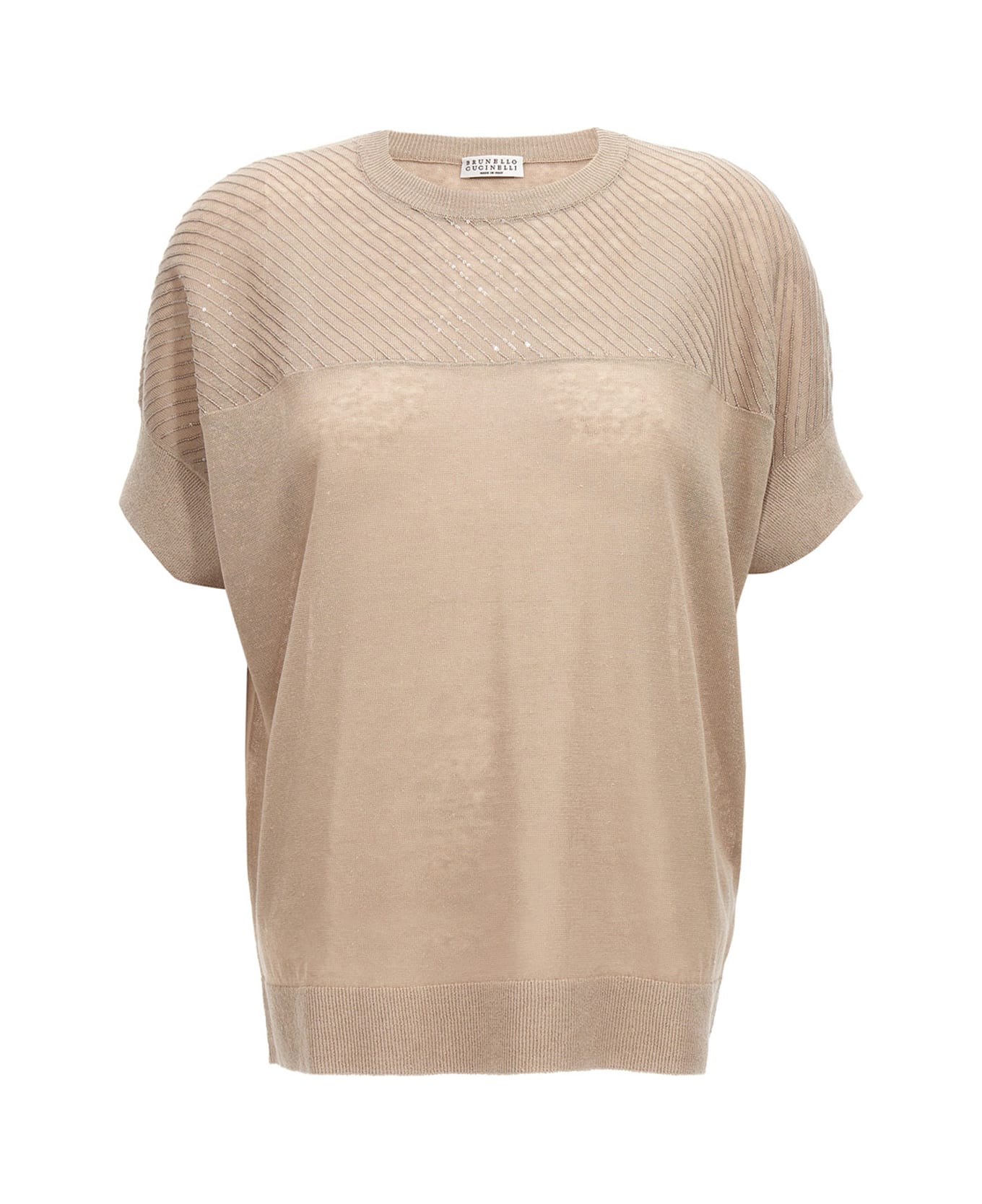 Linen blend sweater with sequin appliqué on the front upper part, a crewneck, and short cuffed sleeves. Composition: 85% linen 15% polyamide