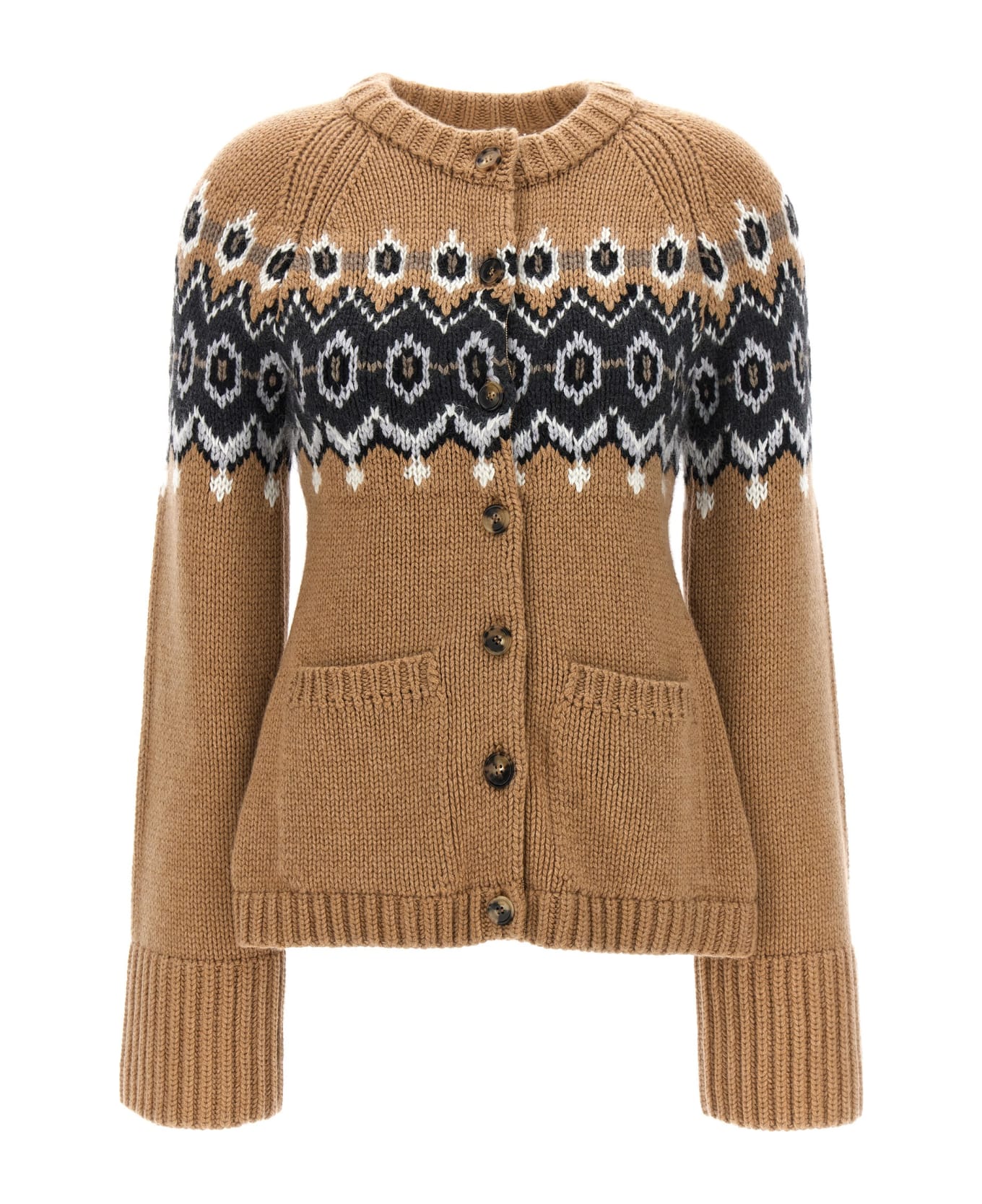 'Suzette' cachemire cardigan with contrasting inlays, flared model with button closure, and crewneck.