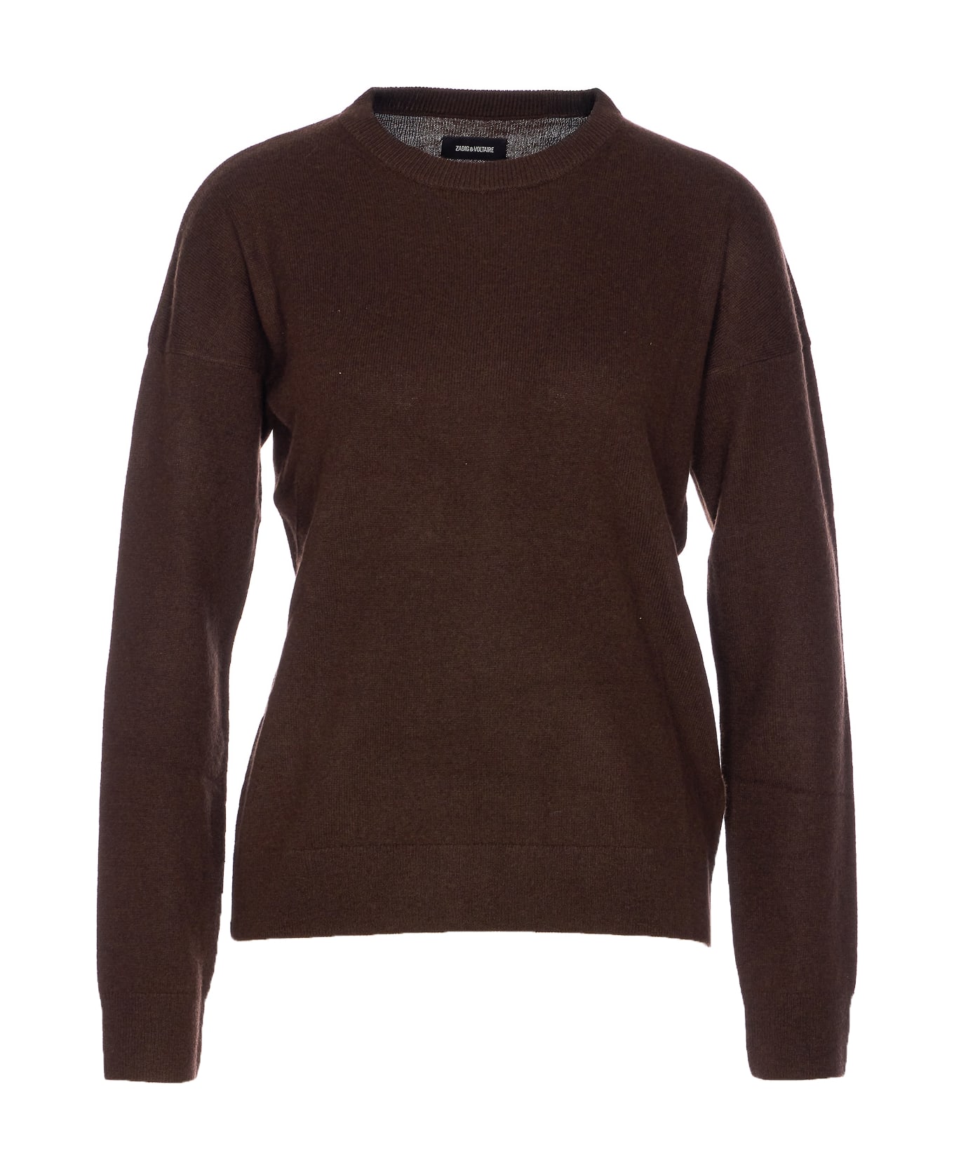 Zadig&Voltaire brown cici ws patch heart sweater, crewneck, heart patch on slevees