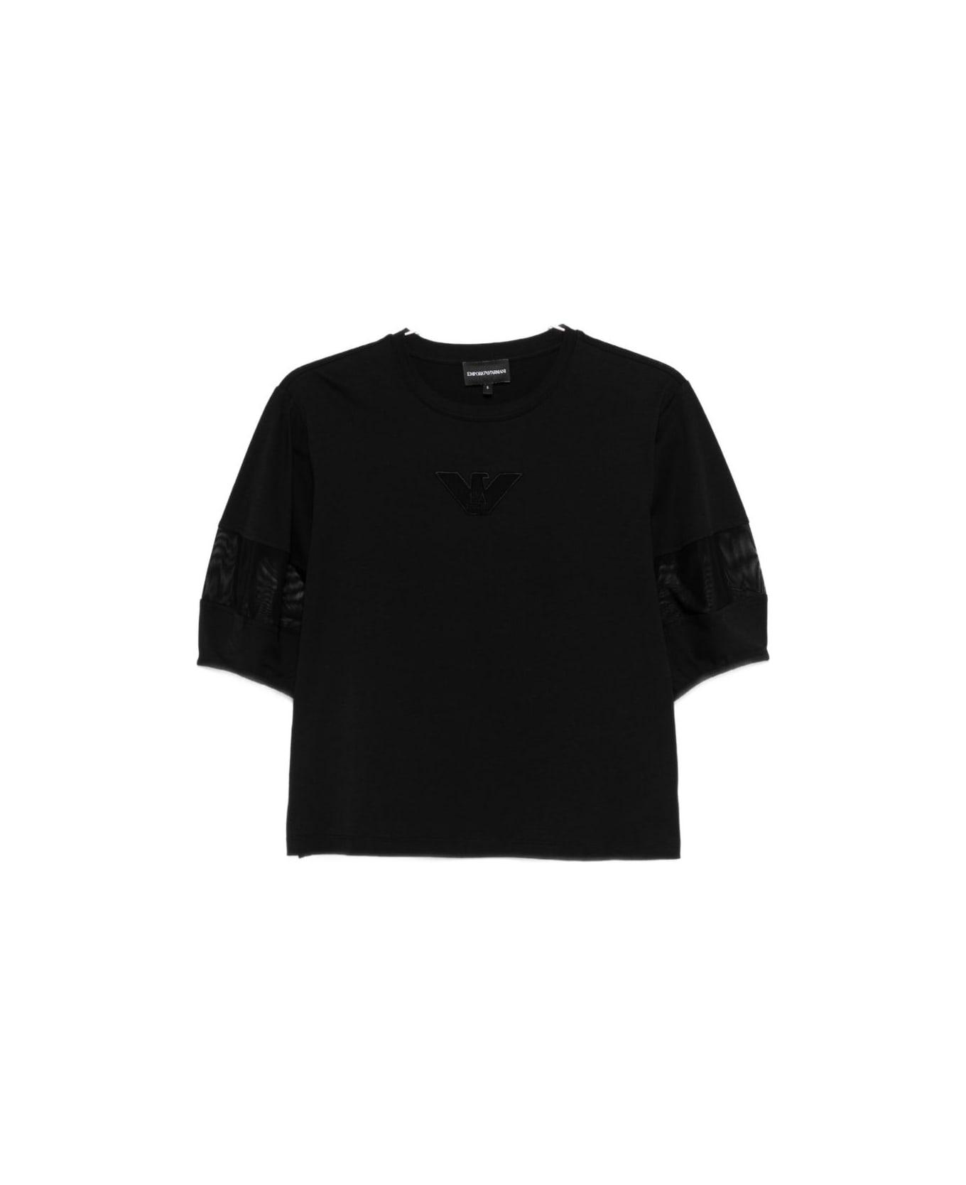black logo appliqué crew neck short sleeves mesh detail Composition: 100% Cotton