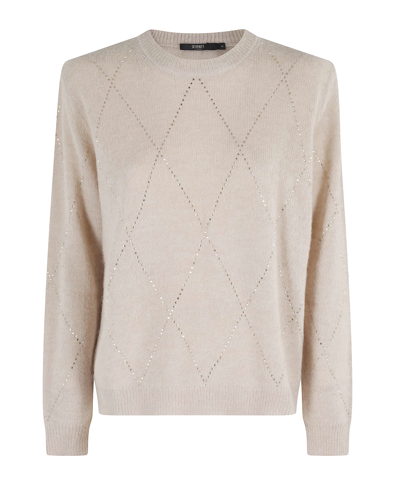 Sweater -Seventy -Beige color -Long sleeve -Neckline -Strass all over