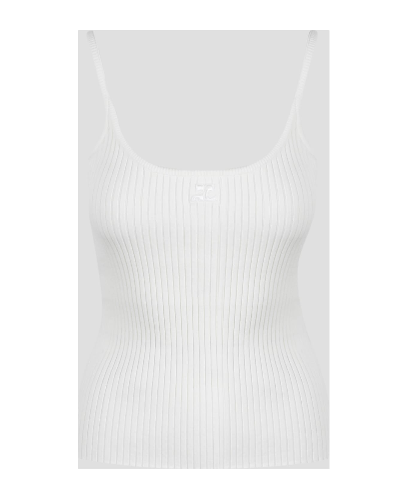 Courrèges top in ribbed knit with embroidered logo. - SS23 - Slim fit - Round neckline - Made in Bulgaria - 70%Viscose, 30%Polyester
