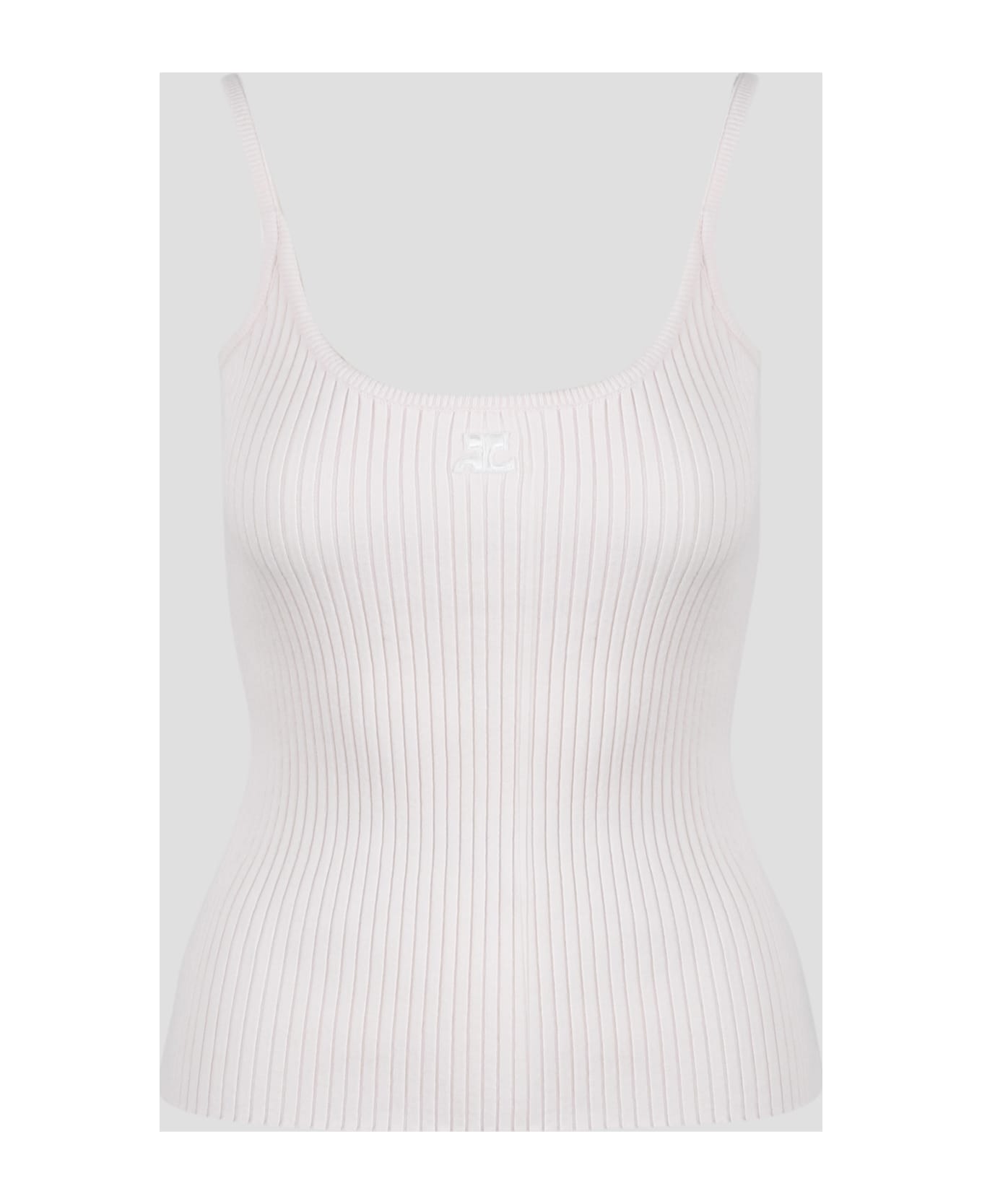 Courrèges top in ribbed knit with embroidered logo. - SS23 - Slim fit - Round neckline - Made in Bulgaria - 70%Viscose, 30%Polyester