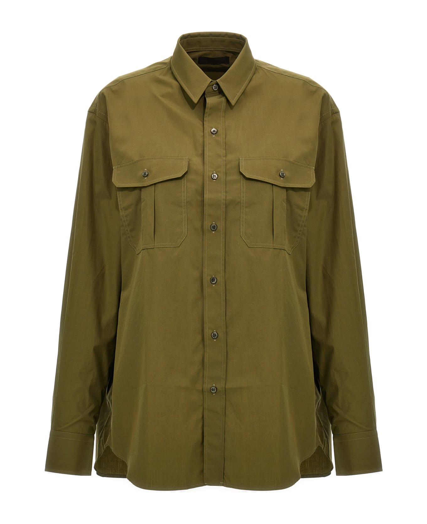 'Oversize' cotton shirt with button closure, pockets, and long cuffed sleeves.