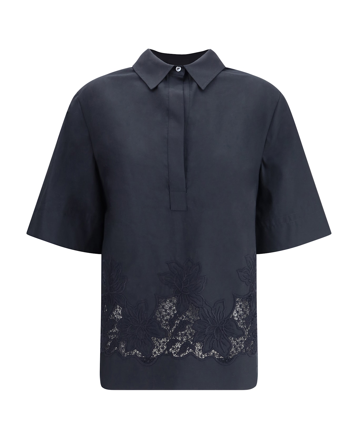 The p. a. r. o. s. h embroidered shirt is an elegant and feminine piece, featuring wide short sleeves that add a touch of lightness and comfort. the classic collar with a button and a deep v-neck add a sophisticated detail, while the floral embroidery at the base of the piece offers a touch of originality and delicacy. perfect for a refined summer look, this shirt reflects the distinctive style and quality of parosh