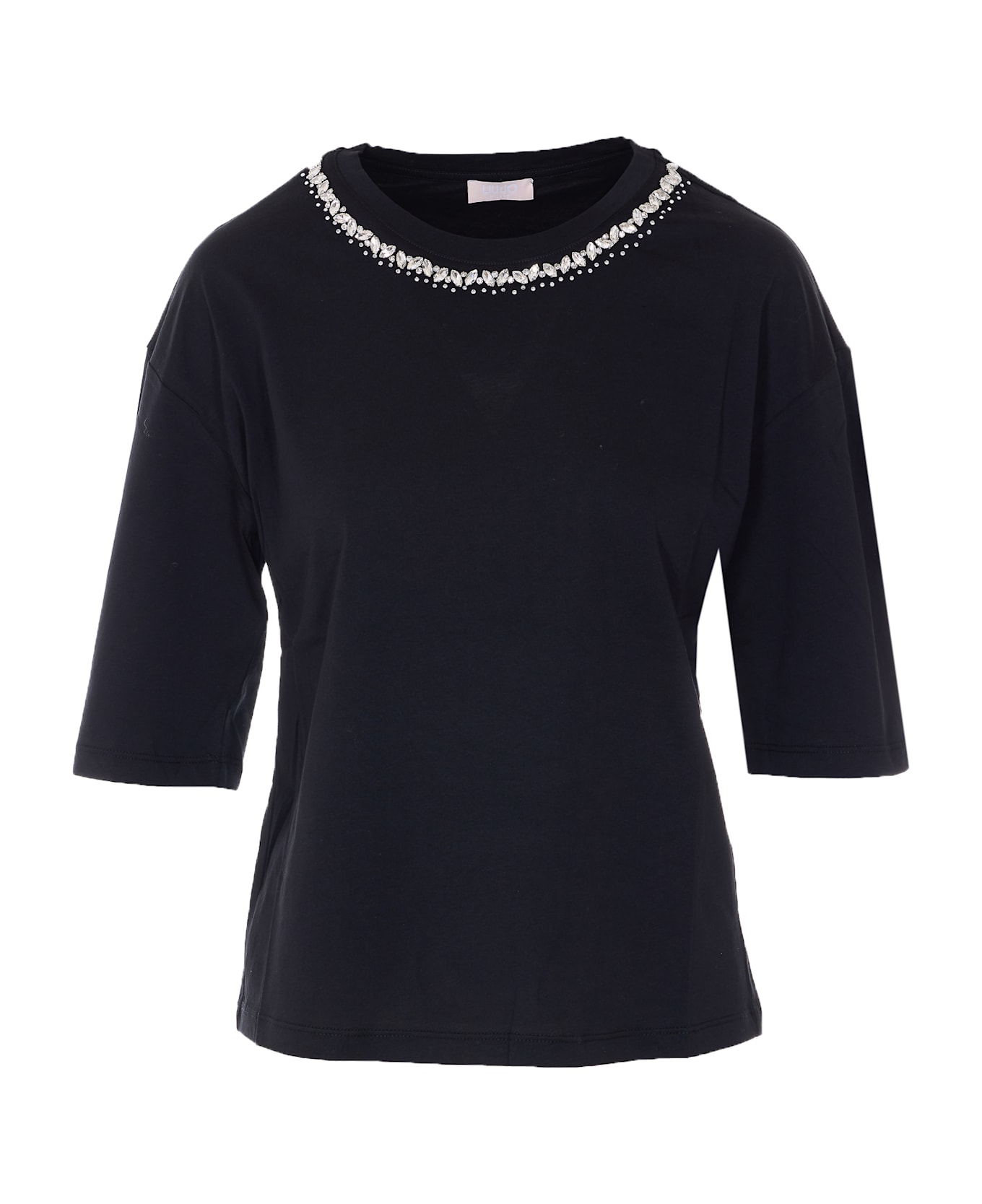 Liu Jo black t-shirt, crewneck, crystals details
