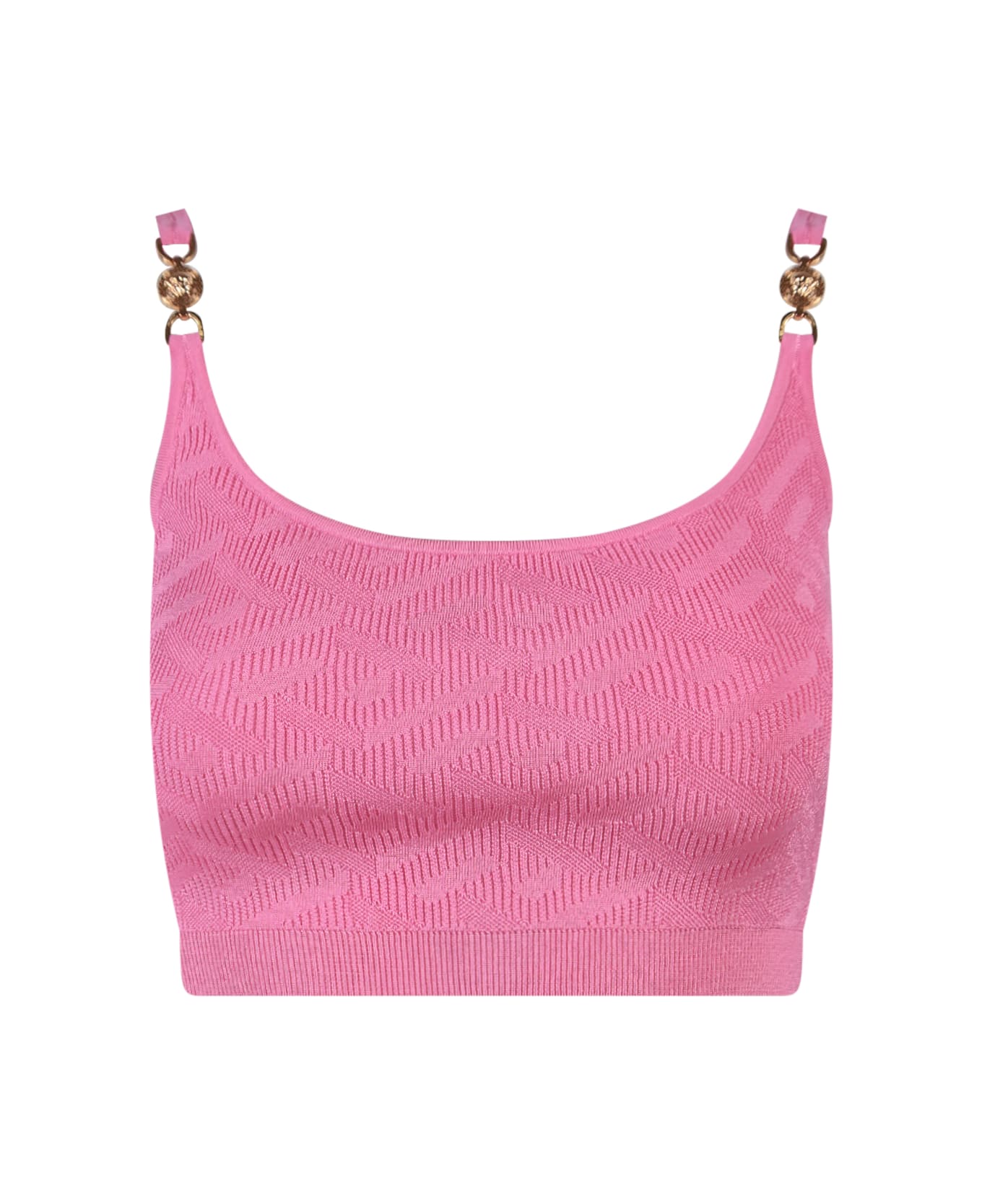 Stretch viscose top with Medusa details - Crop Fit - La Greca Motif - Ribbed Profiiles - Made In Italy - 92% Viscose 6% Polyamide 2% Elastane