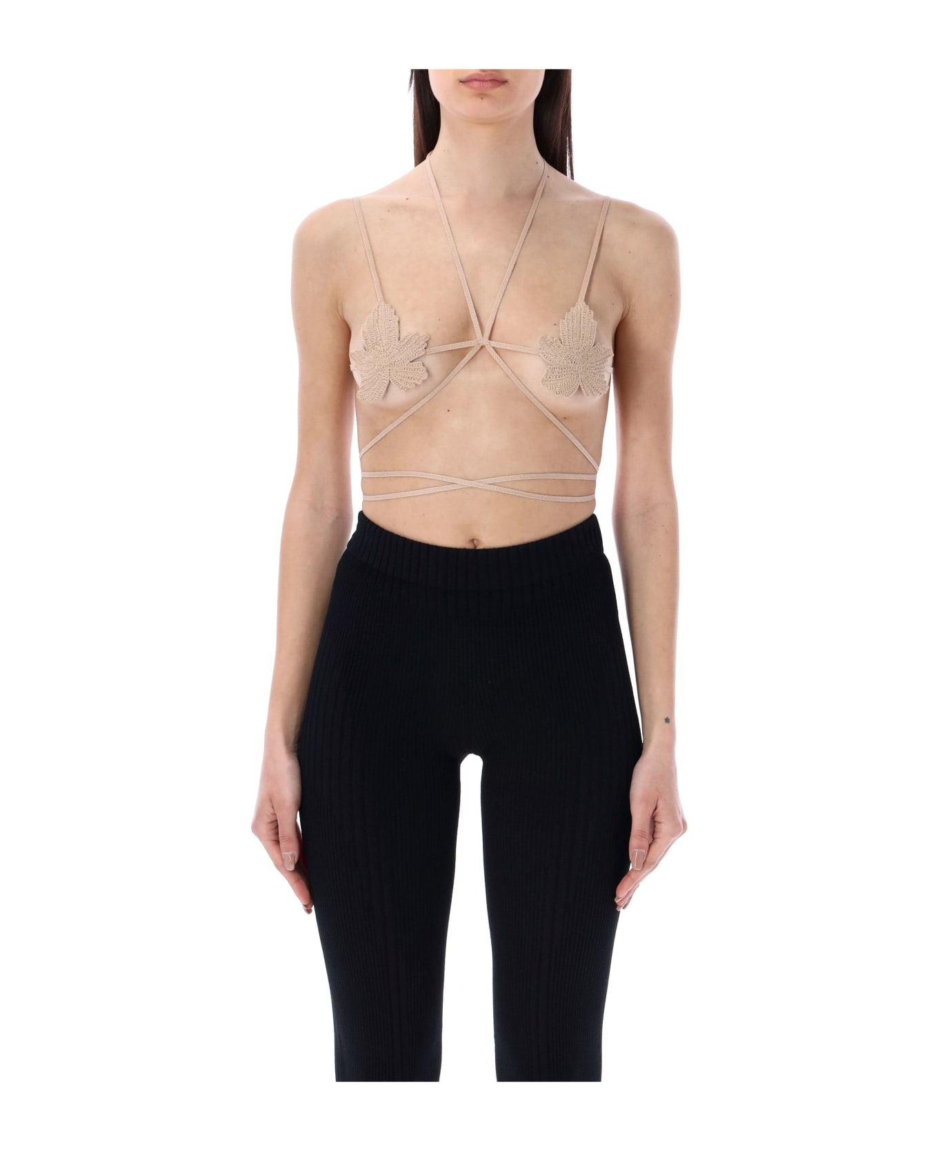 Fig Leaf Bra By Andreadamo. Featuring: Knitted Construction Wraparound Design Halterneck And Back Self-tie Fastening Fig Leaf Cups Model Is 1,72 M Tall And She Is Wearing Size S