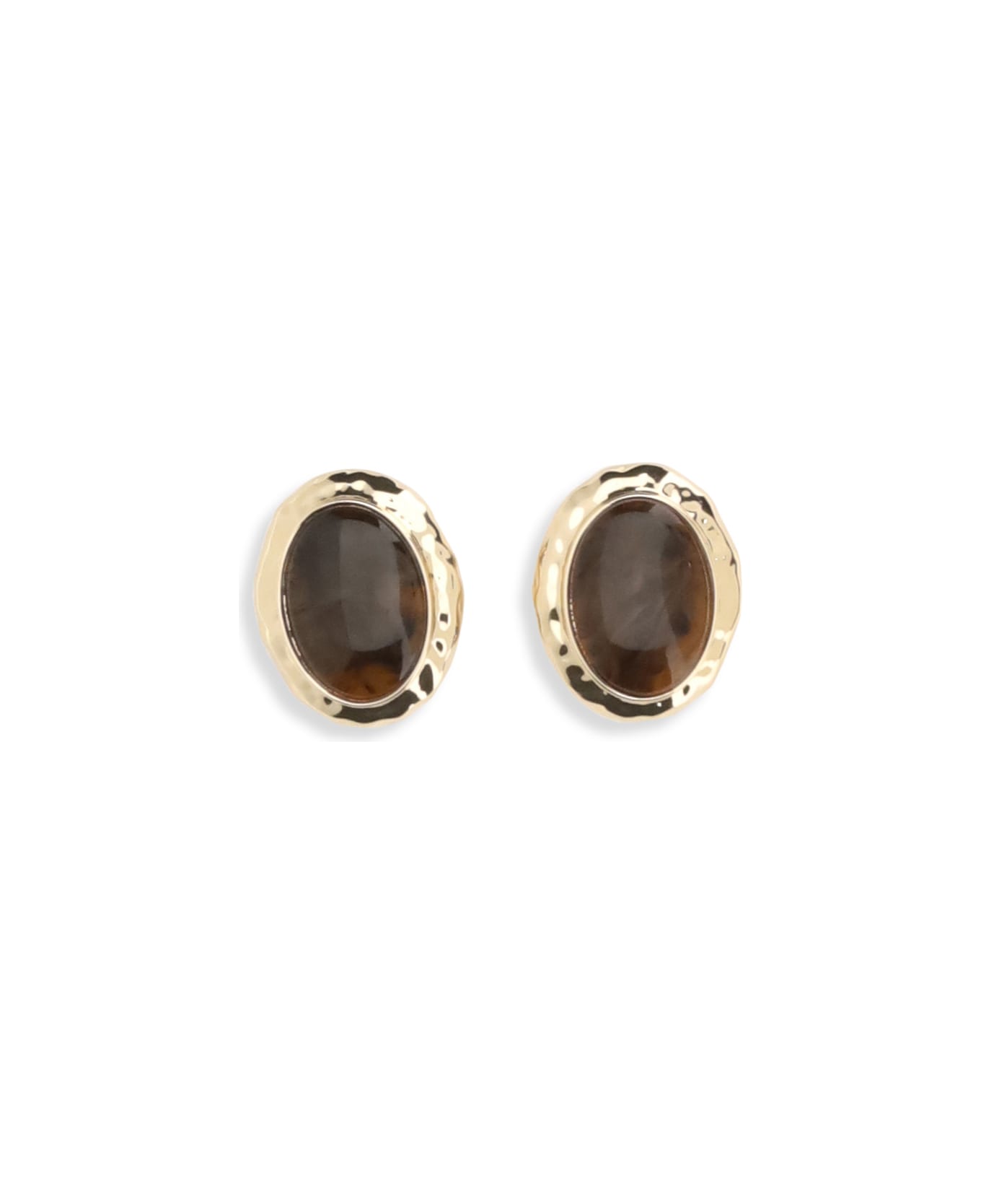 The earrings by self-portrait feature a gold-plated brass frame with a vintage allure, showcasing an elegant brown enamel oval centerpiece. the stud design, with post support, makes them versatile and perfect for both day and night.