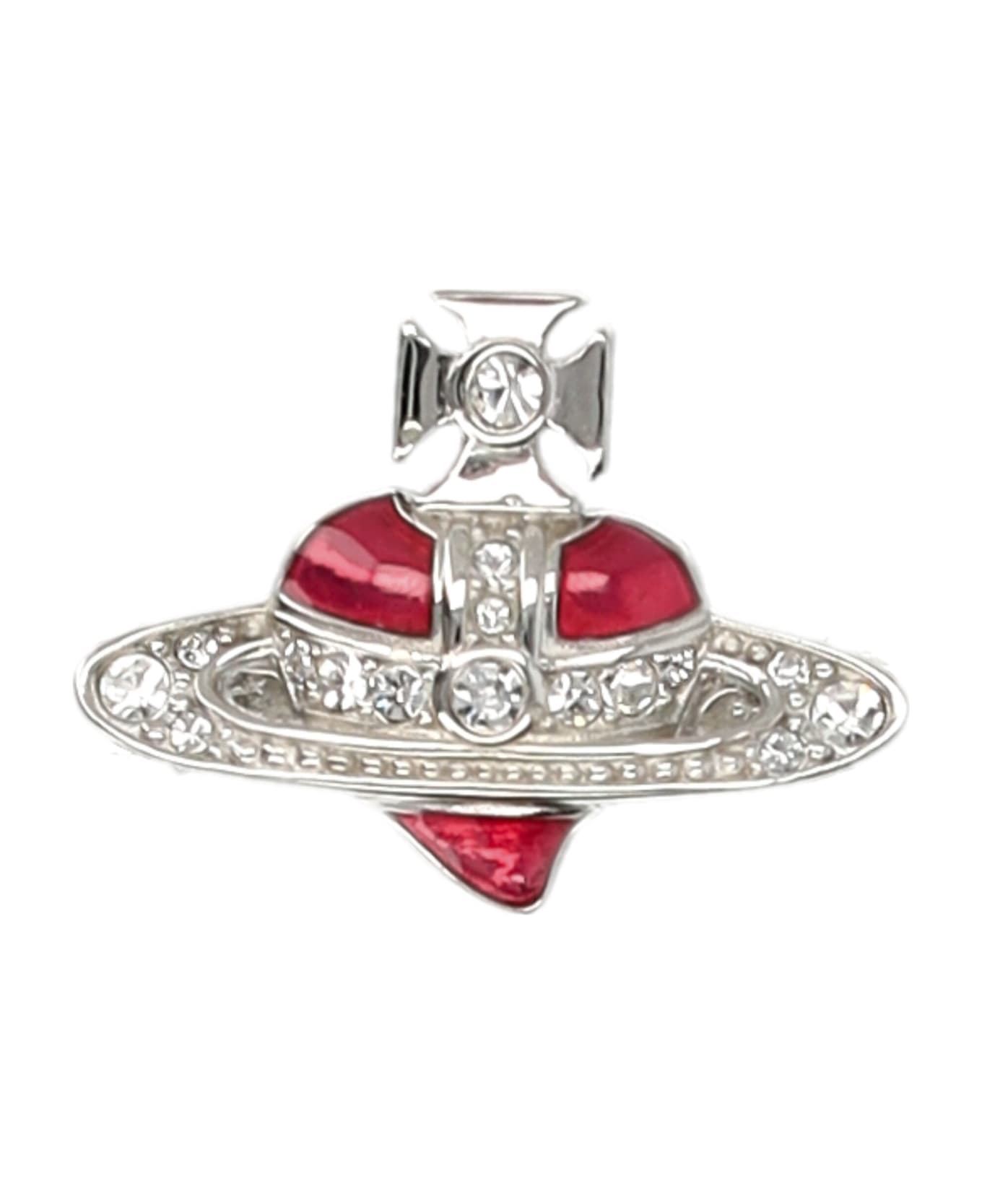 New Diamante Heart Ring By Vivienne Westwood. Featuring: Silver-tone Band Red Heart Detail Encrusted With Sparkling Crystals Iconic Orb Design