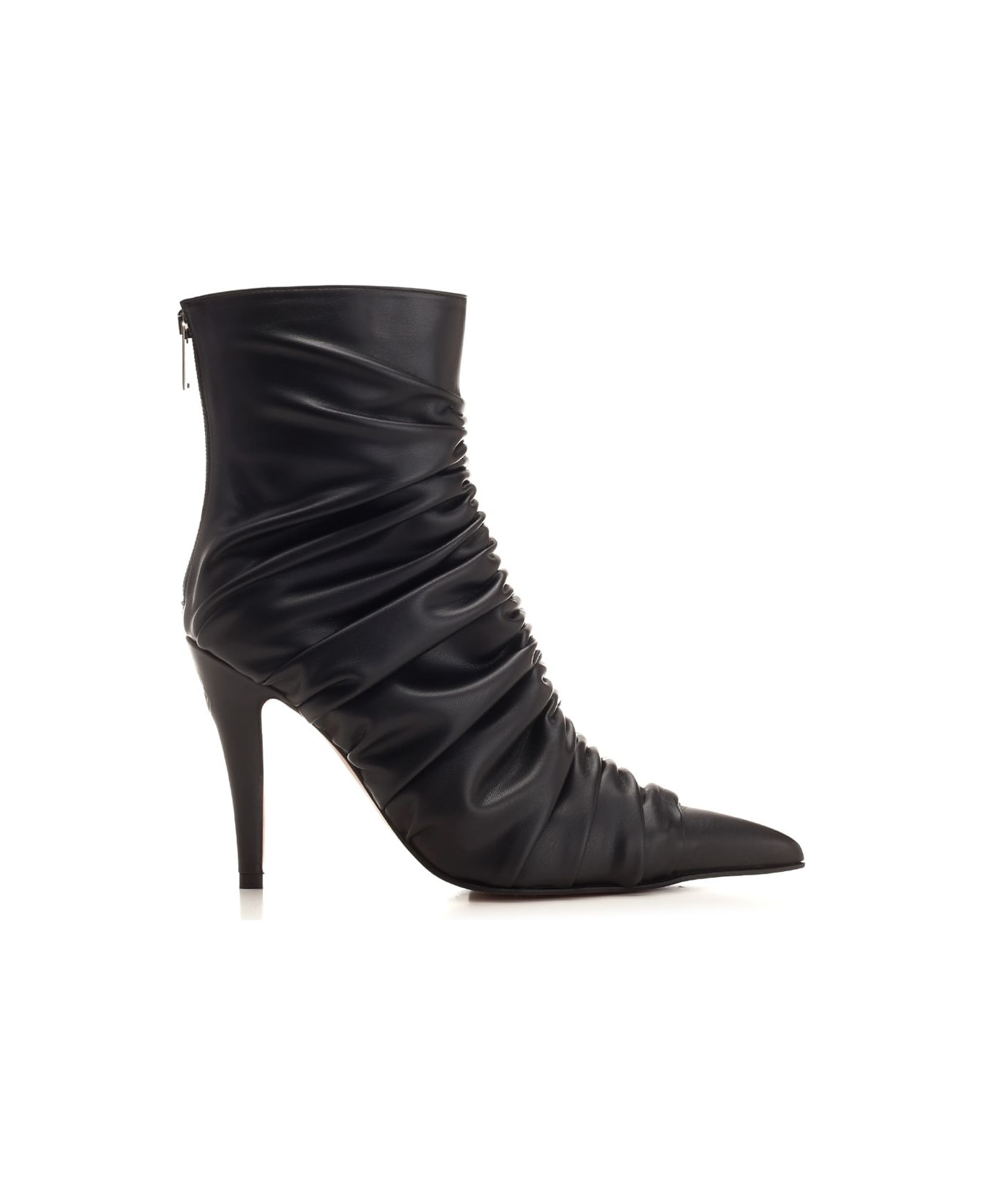 "Birdee" pointed-toe ankle boots from Alexander McQueen made of gathered stretch synthetic materials. Leather-covered heel with reverse Skull embossed detail and zip on the heel. Composition: Synthetic fabric