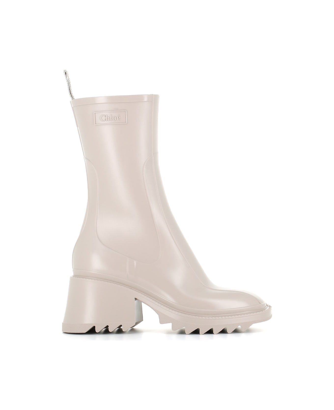 Beige Rubber Ankle Boot from Chloé, featuring by a round toe, mid-calf length, rear tongue and low block heel. Interior lined in polyamide. Heel: 7,5 cm Composition: Pvc