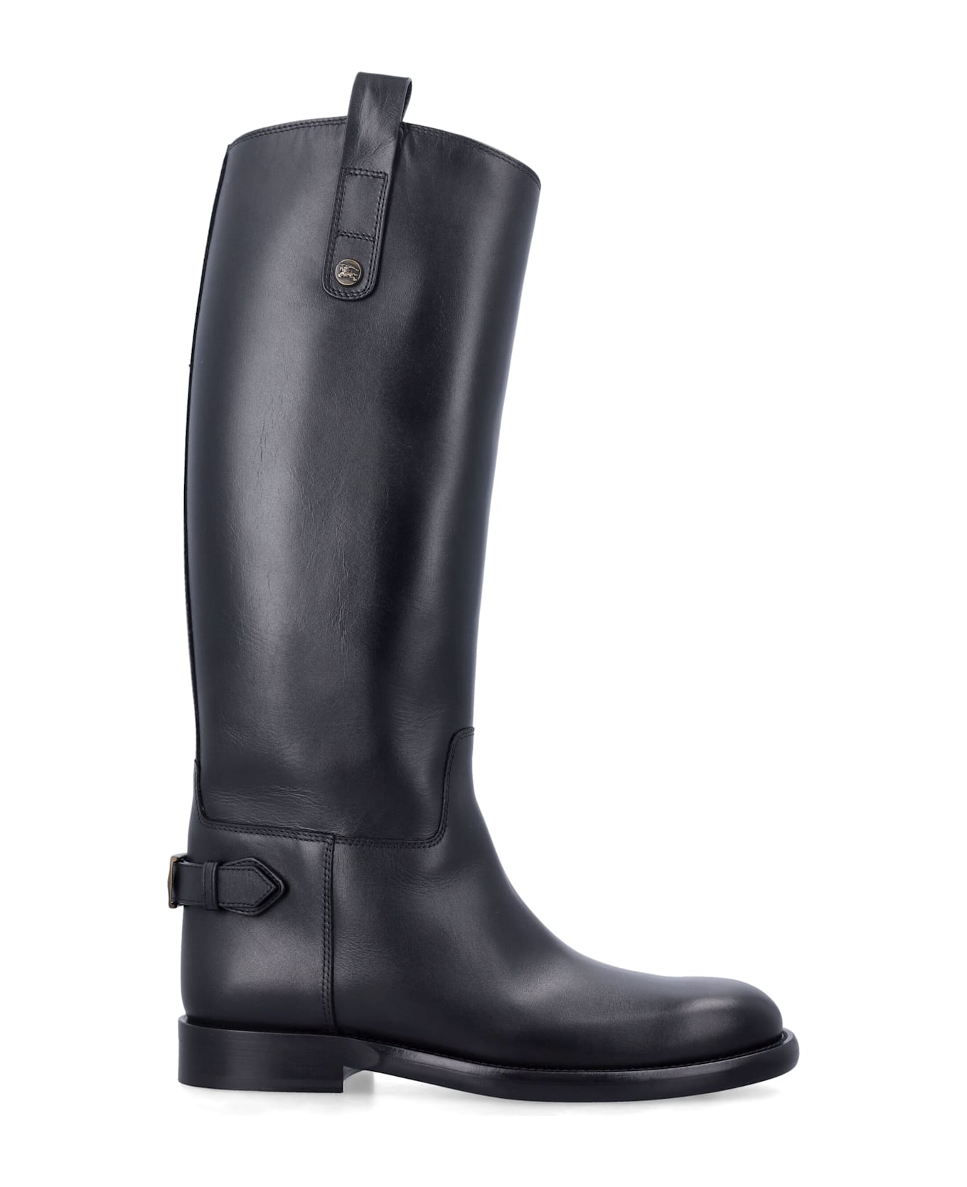 The Burberry London Cavalier Boots Draw Inspiration From The House s Equestrian Heritage. Crafted In Italy From Smooth Calf Leather, The Knee-high Column Silhouette Features Pull Tabs And Buckled Ankle Straps For A Refined Yet Functional Finish. The Rounded Toe And The Signature Equestrian Knight Design In Knight Blue, Moulded At The Sole, Highlight The Brand s Distinctive Craftsmanship. A Timeless Boot Designed To Elevate Both City And Country Looks. Made Of Smooth Calf Leather