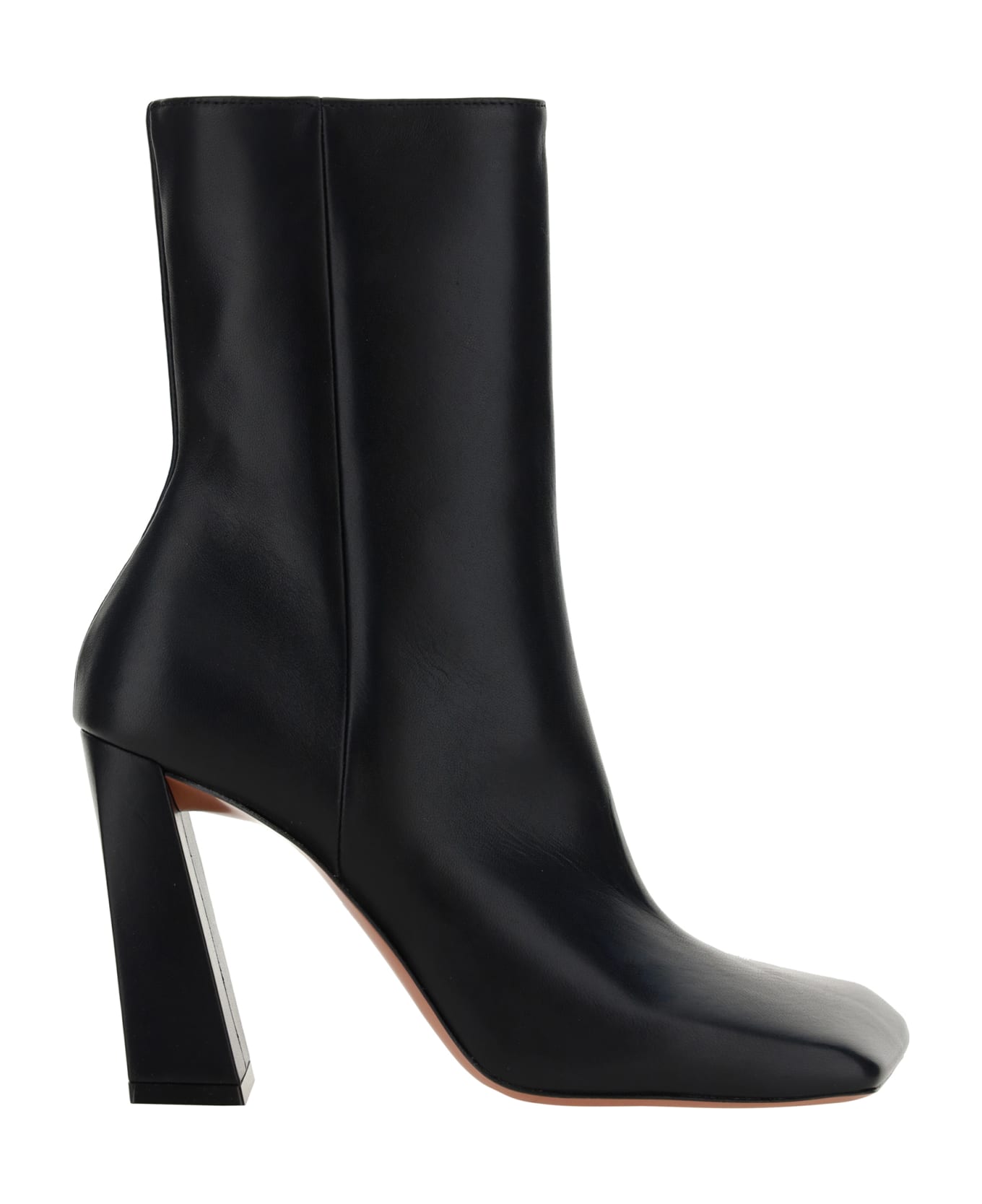 Lambskin marino boots by amina muaddi, featuring a geometric heel, a square toe, and a zipper closure on the inside panel. Composition: 100% % Calf Leather Bos Taurus, 100% % Lamb Ovis Aries Aries