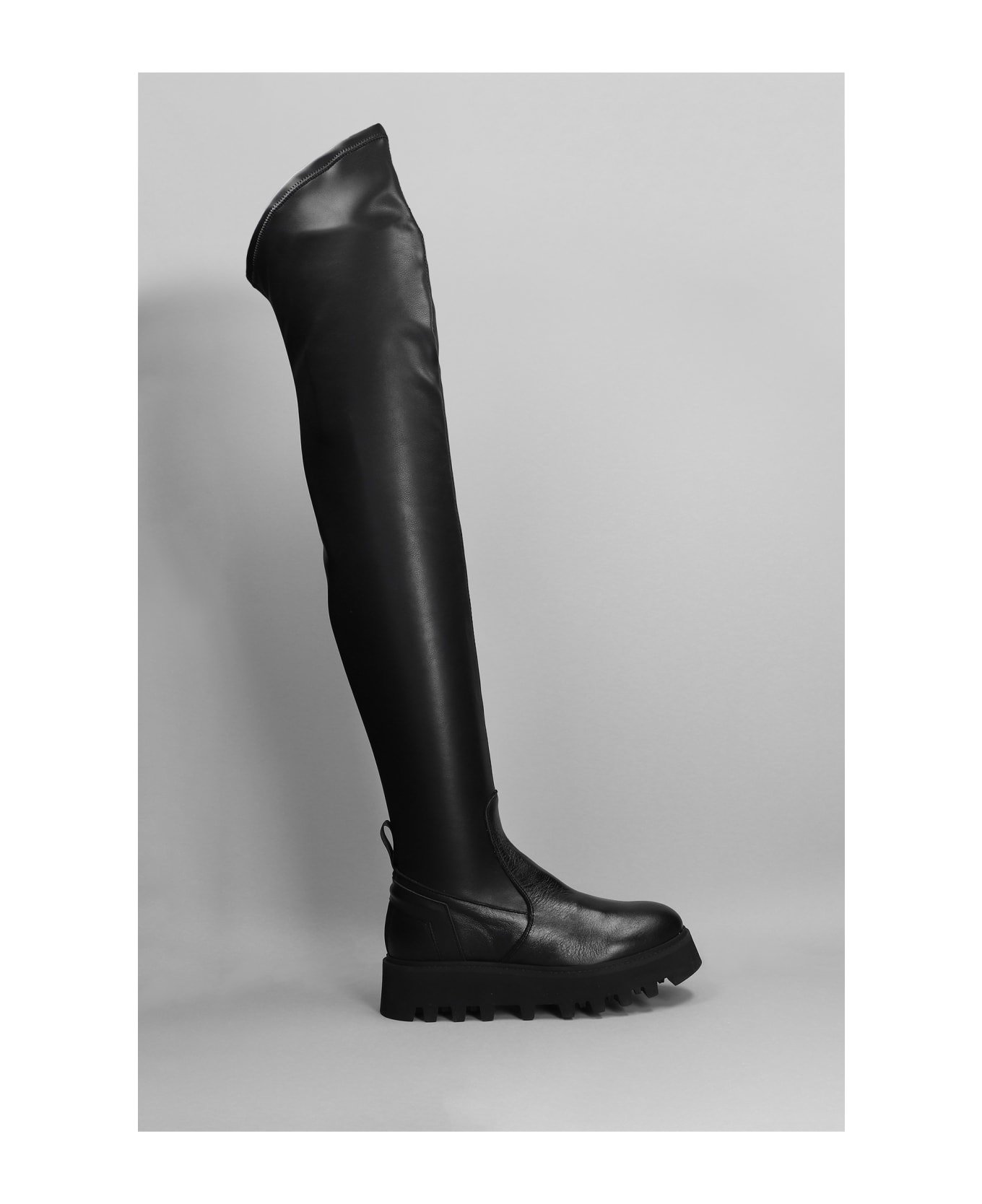 Peggy Combat boots in black leather, cuissard style, almond toe, zip clousure, combact rubber sole, rubber outsole, 50 mm heel, 100% leather, Made in Italy