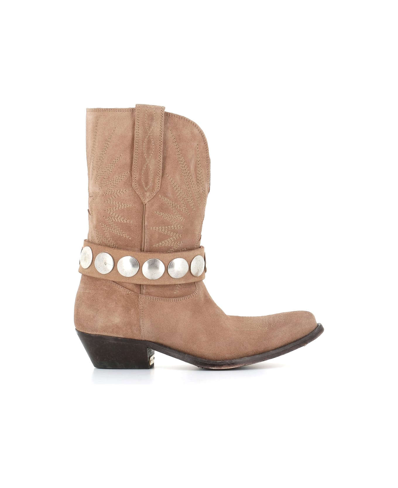 Beige suede texan boot from Golden Goose, featuring by contrasting stitching. Leather sole. Lined interior. Heel: 4 cm