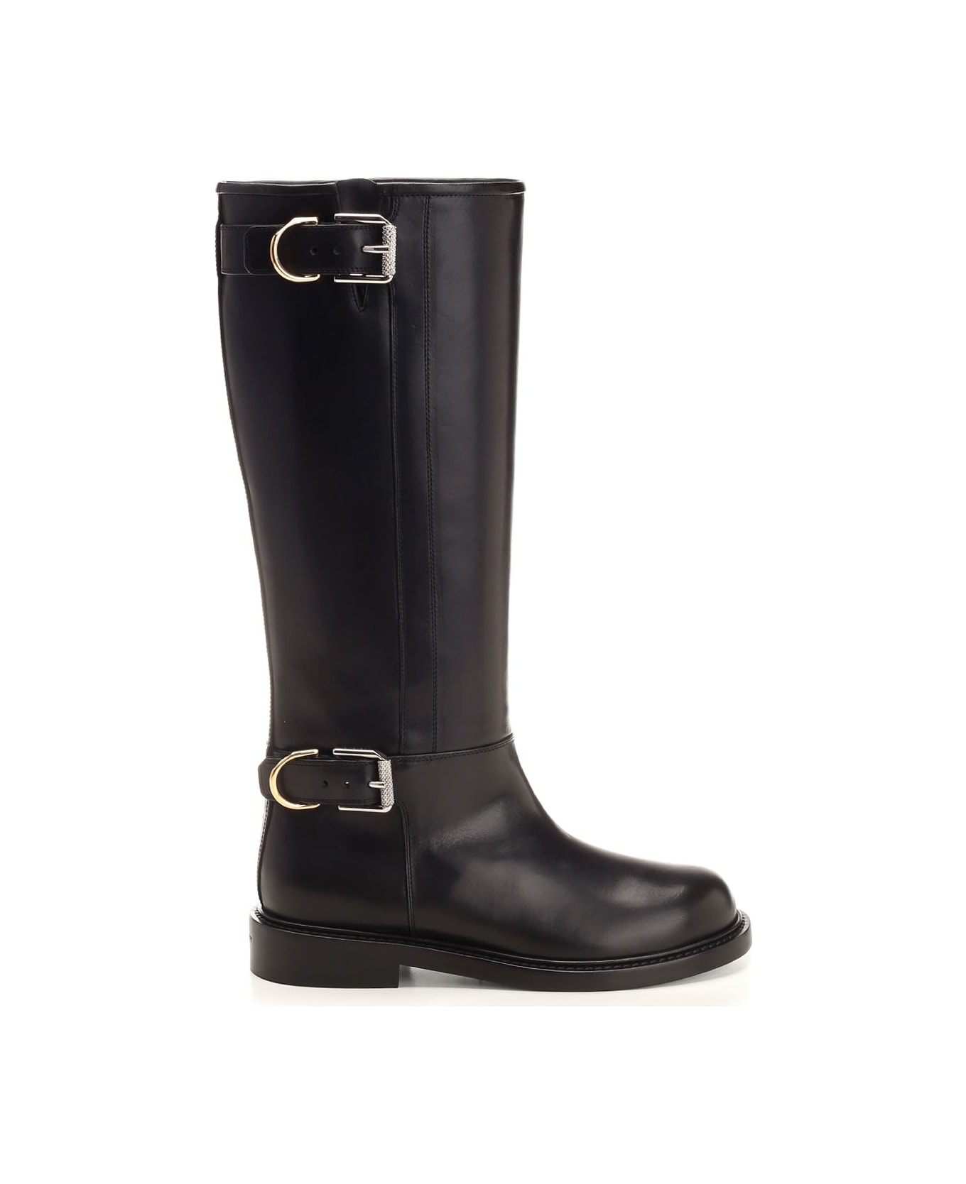 'Voyou' black calf leather boots from Givenchy, with rounded toe and double Vouyou buckle.