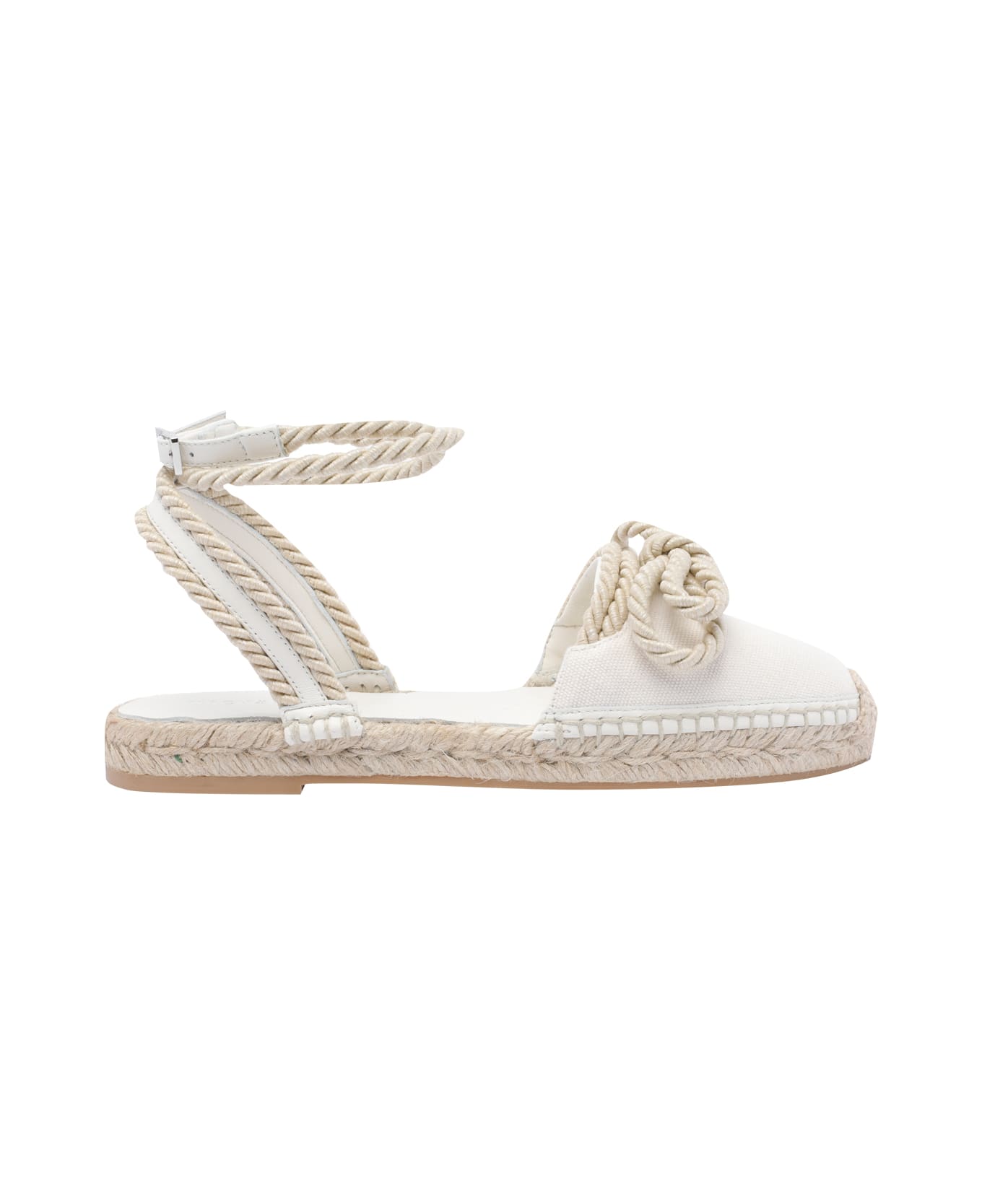 Mach&Mach white double bow Riviera espadrillas, fabric upper, round toe