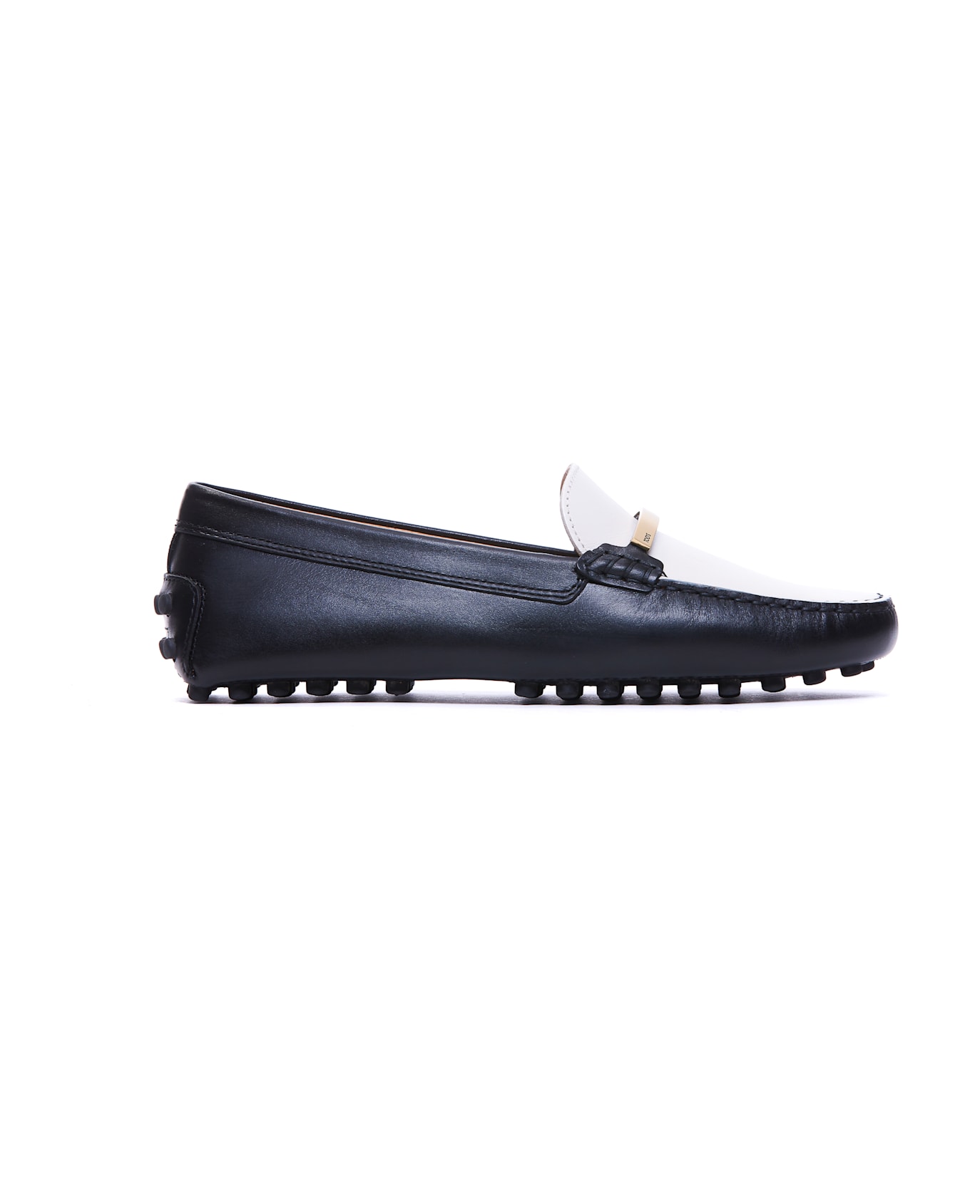 Tod's black and white Gommino loafers, plaque logo, Gommini details, leather upper, round toe