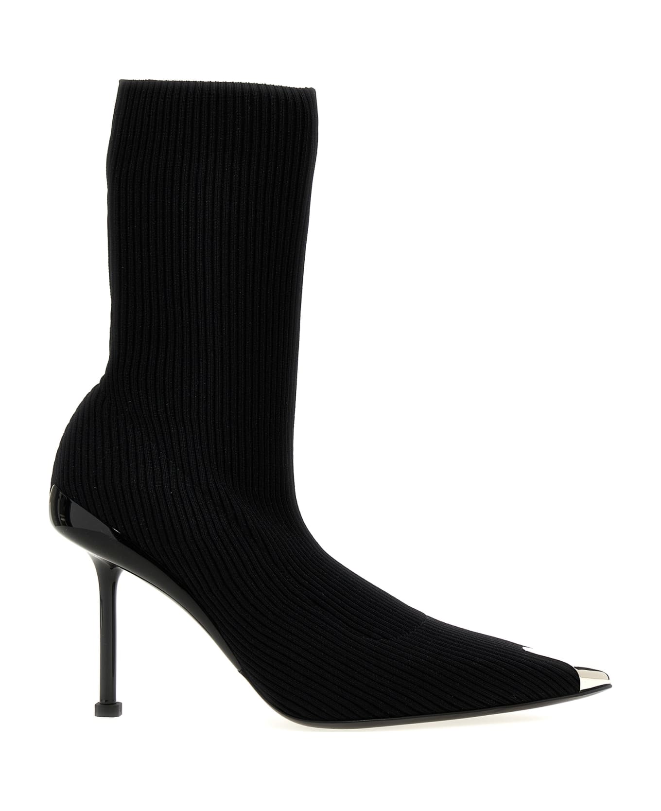 'Slash' ribbed knit ankle boots with silver metal punk-style toe, tone-on-tone lacquered heels with cut-out and a silver soul. Composition: