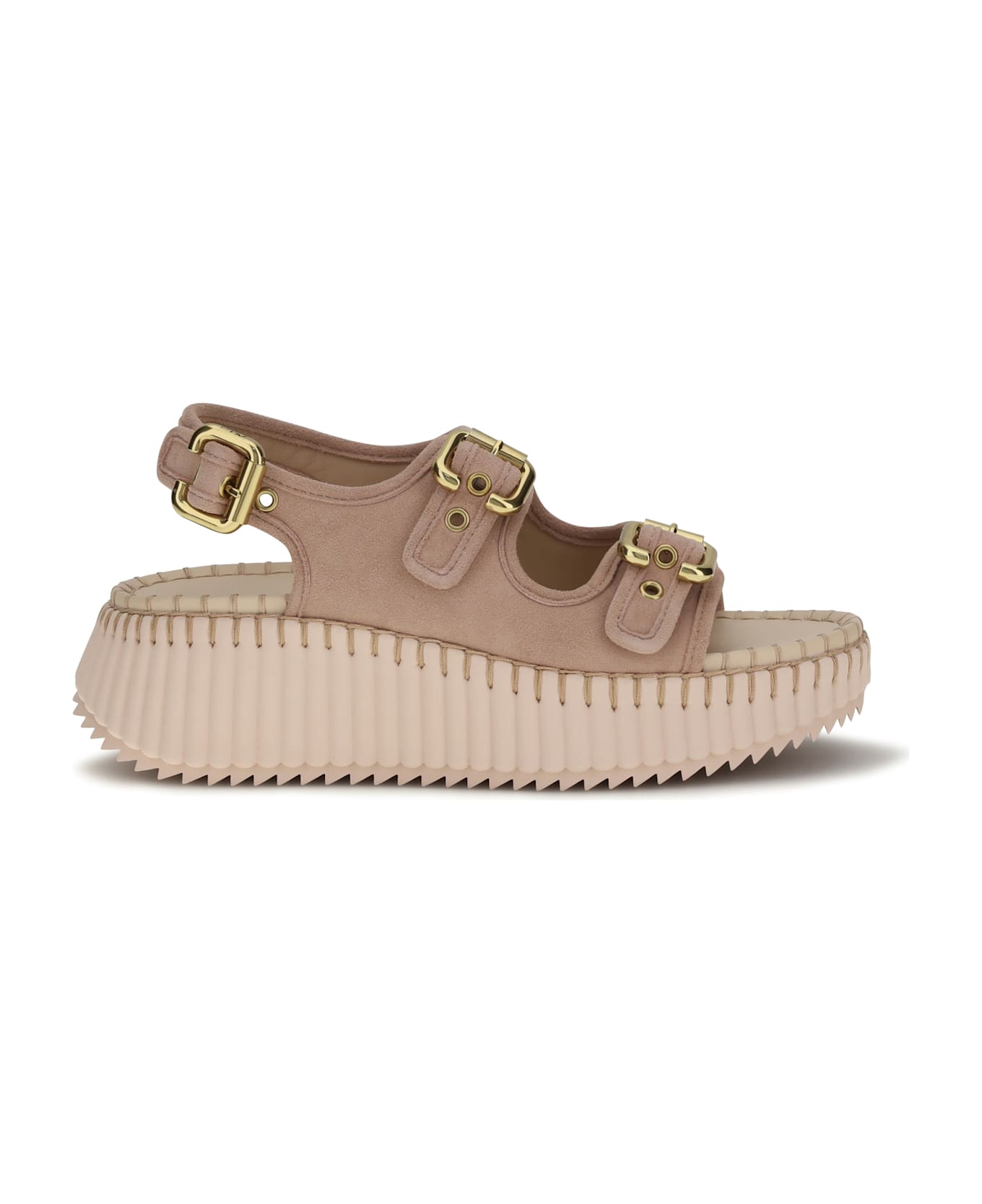 The nama wedge sandals by chloè, crafted from fine cowhide leather, are the perfect combination of elegance and comfort. featuring double front straps and an adjustable ankle strap with paddington buckles in a refined gold tone, these sandals are designed for those seeking sophisticated style without compromising on comfort. the iconic platform, made from recycled materials, offers lightness and support, while the delicate tone-on-tone stitching adds a touch of craftsmanship.