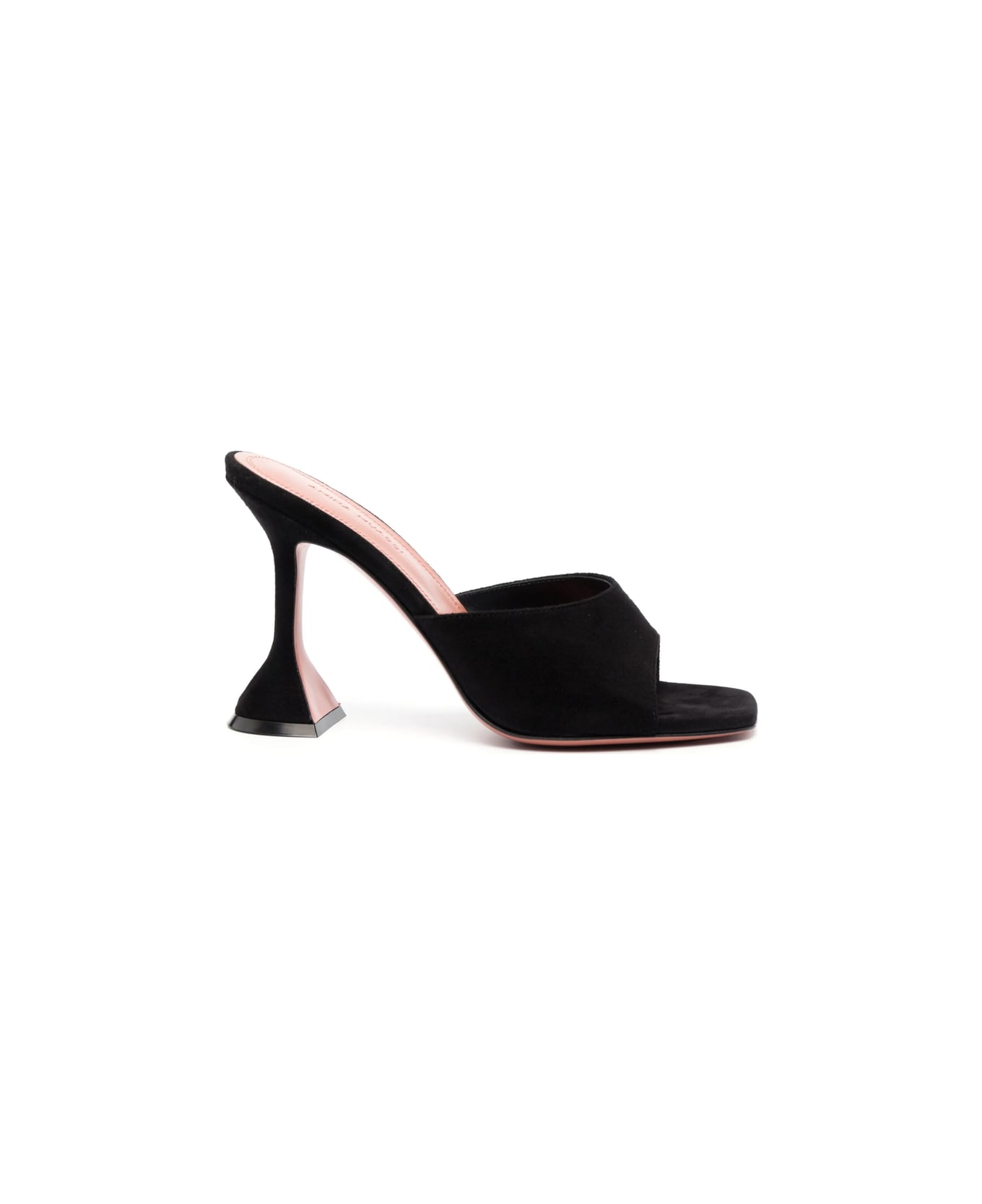 black calf suede open toe slip-on style branded heel counter high cone heel