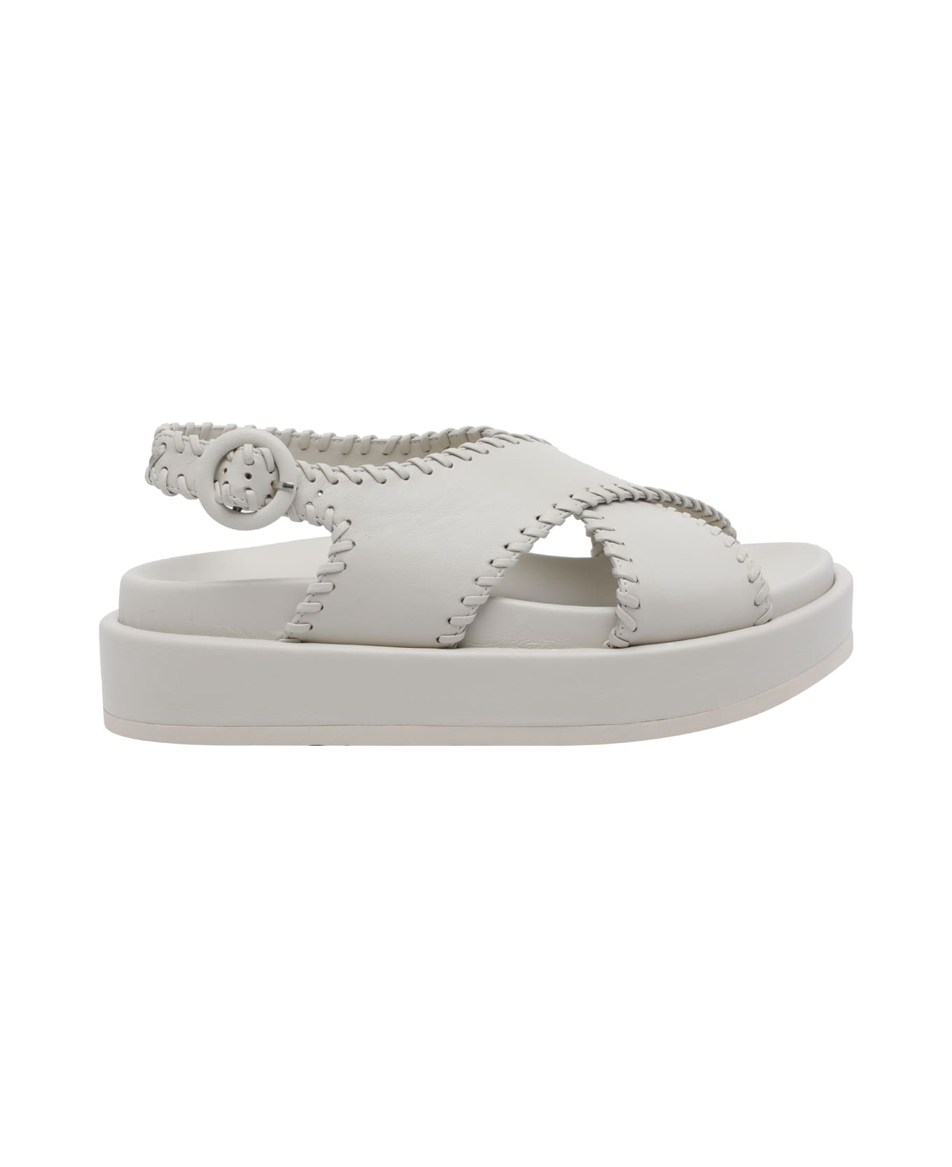 Paloma Barcelo' white Ursula Nappa sandals, buckle closure, leather upper, open round toe