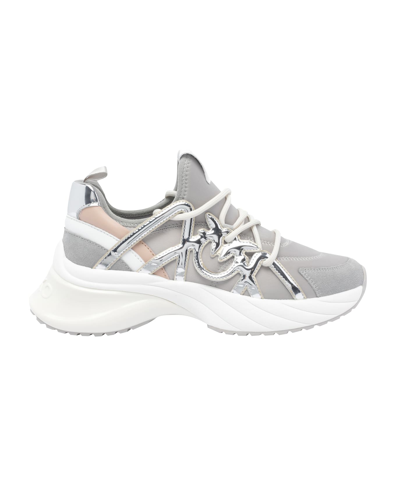 Pinko grey Ariel 01 sneakers, laces closure, leather upper, lateral logo