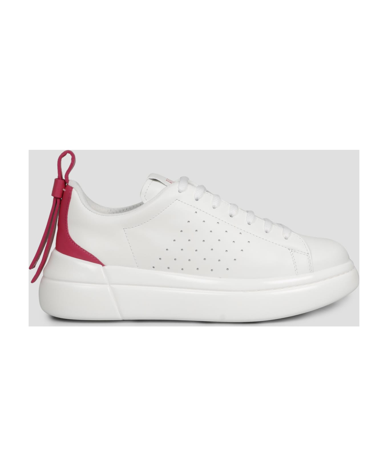 Red Valentino Bowalk sneakers, in smooth leather with contrasting back insert. - SS23 - Round toe - Lace up - Logo label on the front tongue - Side perfoared motif - Contrasting insert with logoed bow detail on the back - Rubber sole - Made in Italy - Leather