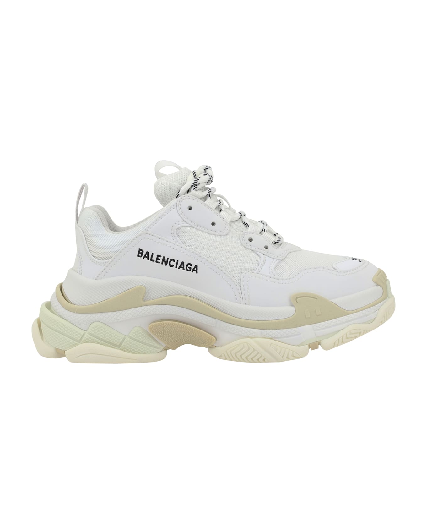 Balenciaga's triple s sneakers are an icon of style and comfort, featuring a lace-up closure for a secure fit. the logo patch on the padded tongue and embroidered logo on the side add a distinctive and recognizable brand touch. the wide logo sole gives the sneakers a bold, modern look, while the brand logo print on the insole completes the design, offering yet another exclusive detail.