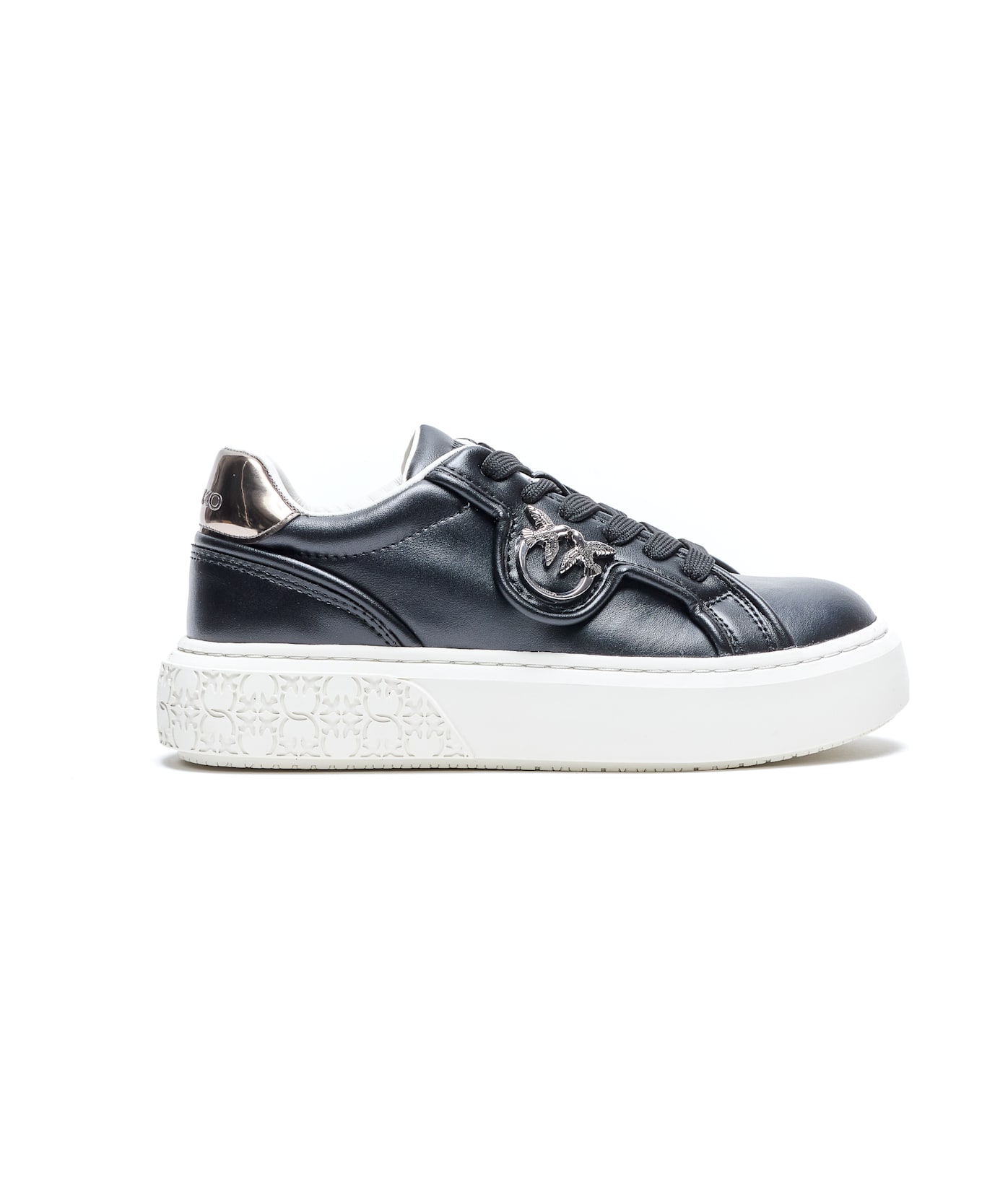 Pinko black Yoko sneakers, leather upper, laces closure, logo, round toe