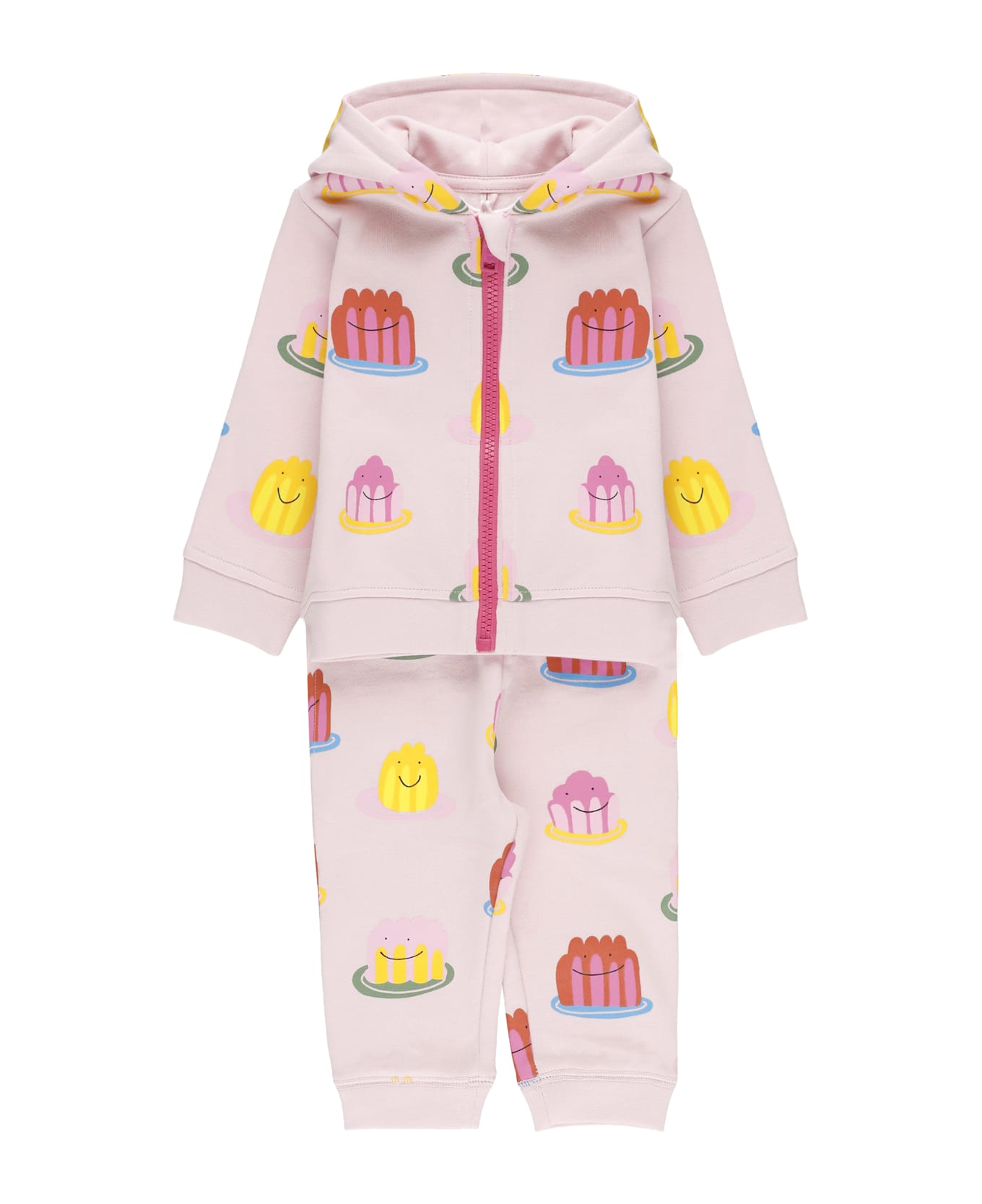 - Pink Stella Mc Cartney Junior two-piece jumpsuit for boy - Hood - Front zip fastening - Long sleeves - Elastic ribbed trims - All-over contrasting color print - Pants with elastic waist and drawstrings - Two side slit pockets - One rear welt pocket Composition: 100% Cotton Fabric 2:, 98% Cotton, 2% Elastane
