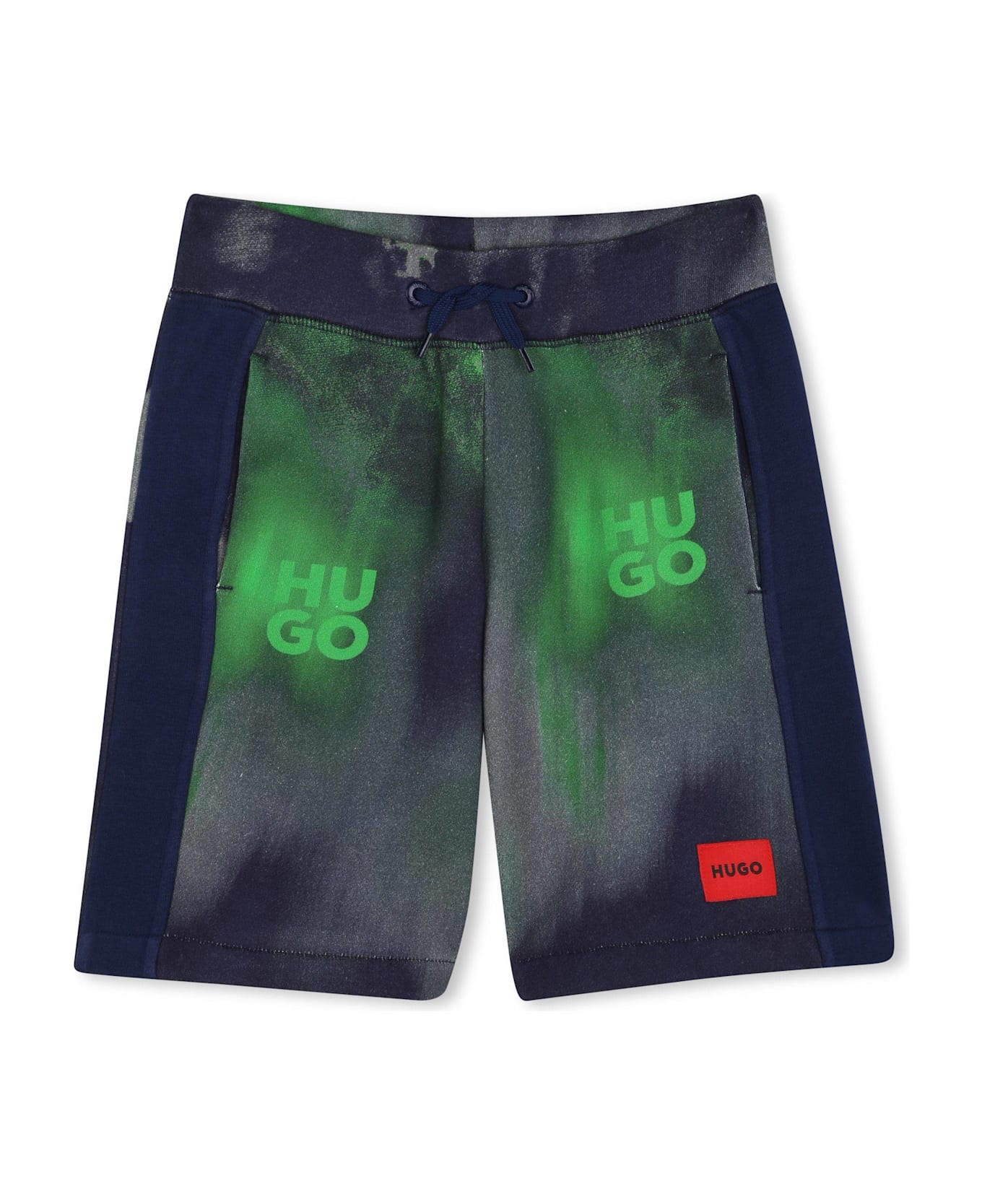 Bermuda con stampa Caratteristiche blu navy verde misto cotone stampa con logo all-over vita con coulisse elasticizzata due tasche laterali applicazione frontale con logo tasca posteriore a filetto tessuto in spugna Composizione cotone 87%, poliestere 13% Istruzioni per il lavaggio Leggi le indicazioni del produttore