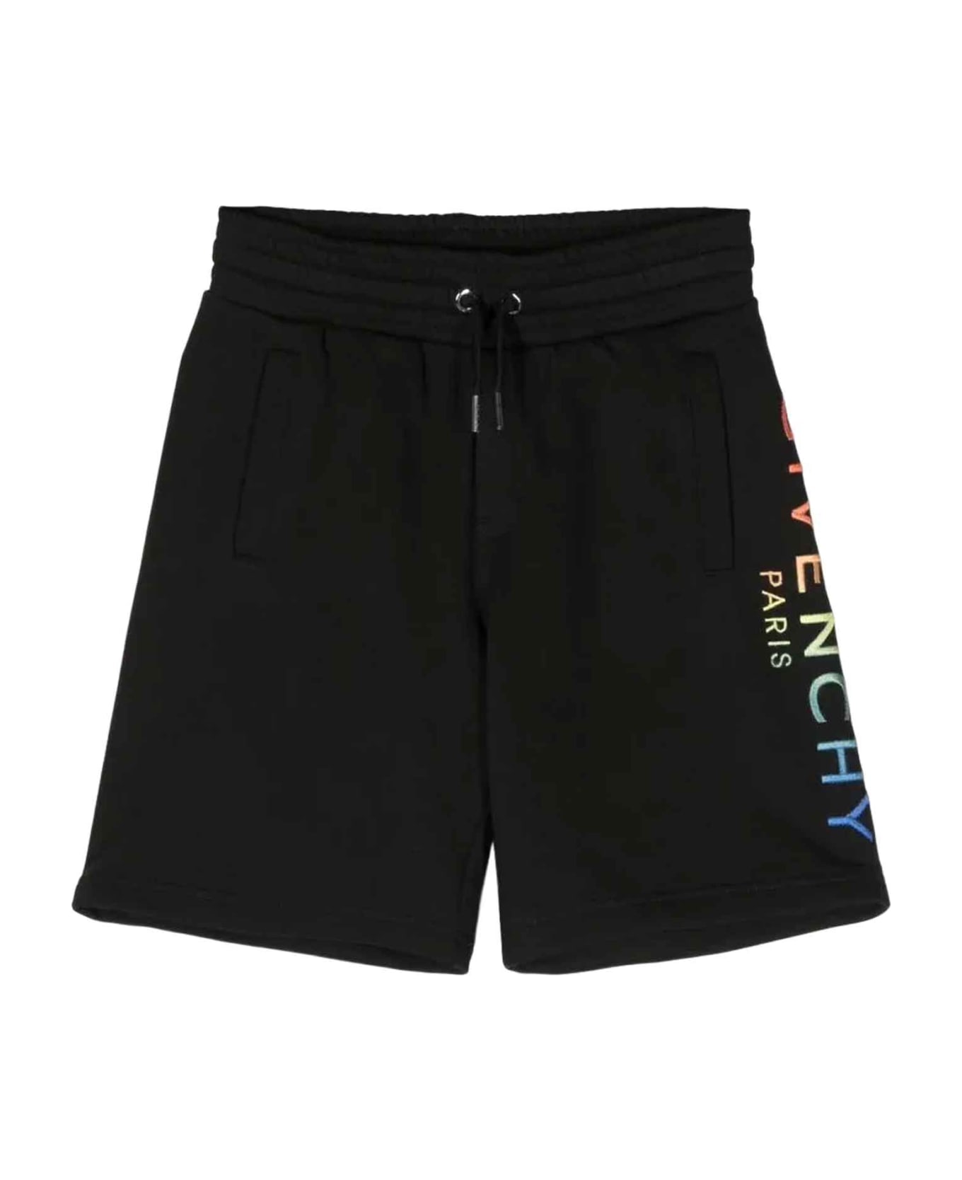 black shorts boy. Side logo embroidery, characteristic 4G motif, gradient effect, elasticated drawstring waist, two side welt pockets and two back welt pockets. Cotton 86%, Polyester 14%