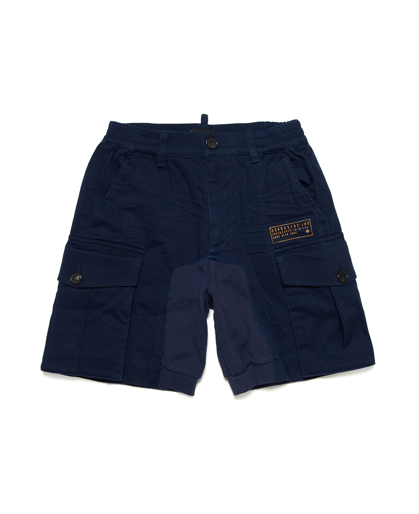 Blue shorts boy. Belt loops, front closure, two side pockets and print. Cotton 98%, Spandex/Elastane 2%