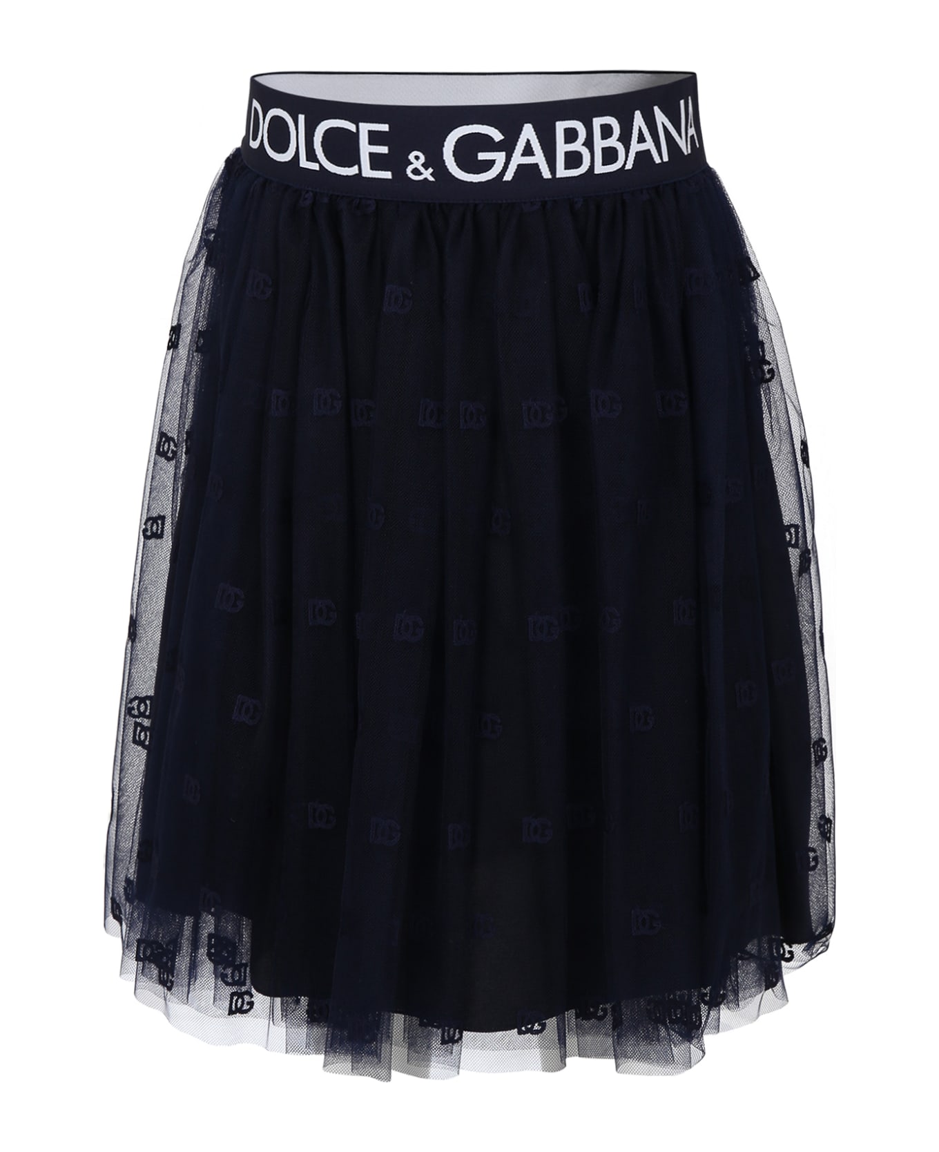 Color: Blue Blue tulle skirt with logoed elastic waistband. It is embellished with all-over embroidered logo. 83% Nylon, 10% Cotton, 7% Polyester. Machine wash at 30C.