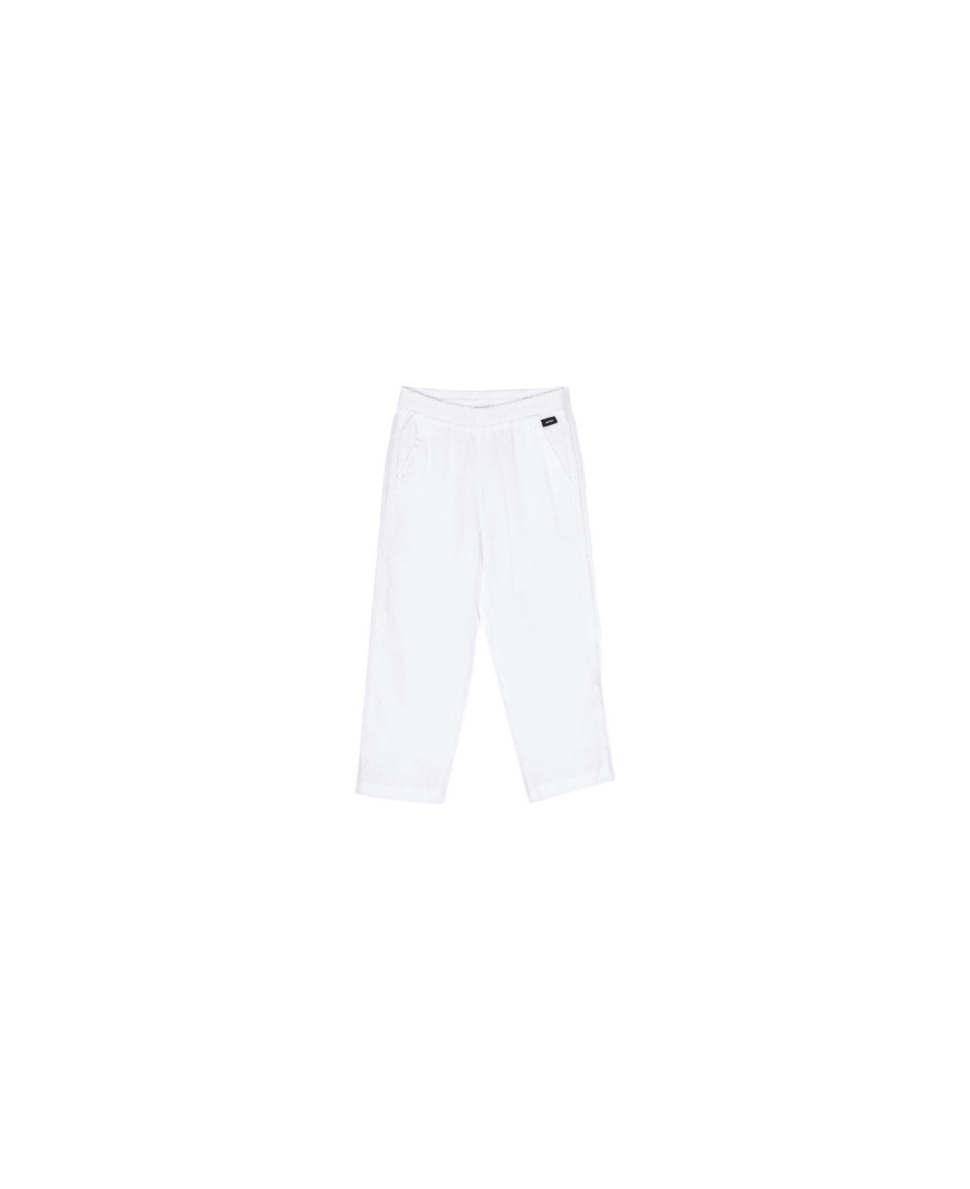 In white, in cotton and linen, mini logo plate, elasticated waist, straight cut and two pockets with inserts. CONSCIOUS: this article contains at least 50% low impact materials, certified or widely recognized as having a reduced environmental impact.