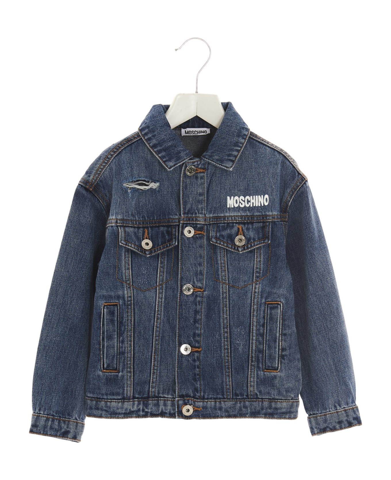 Cotton denim jacket with used effect details, logo print at the front and back, a button closure, pockets, and long cuffed sleeves. Composition: 100% cotton