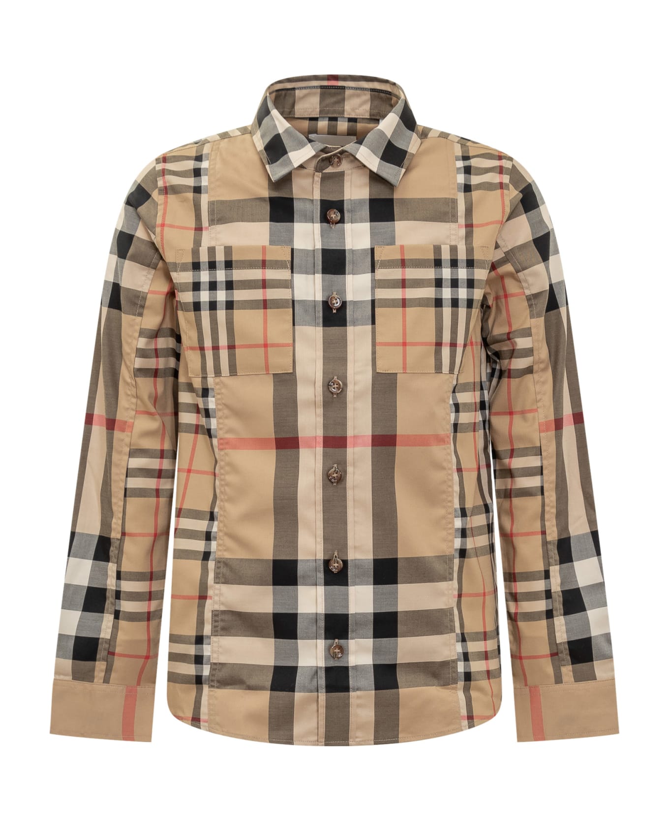 Long sleeved shirt. Button closure. Two chest pockets. Check pattern all-over. Composition: Reference Size In Years., 95% Cotton, 5% Elastane