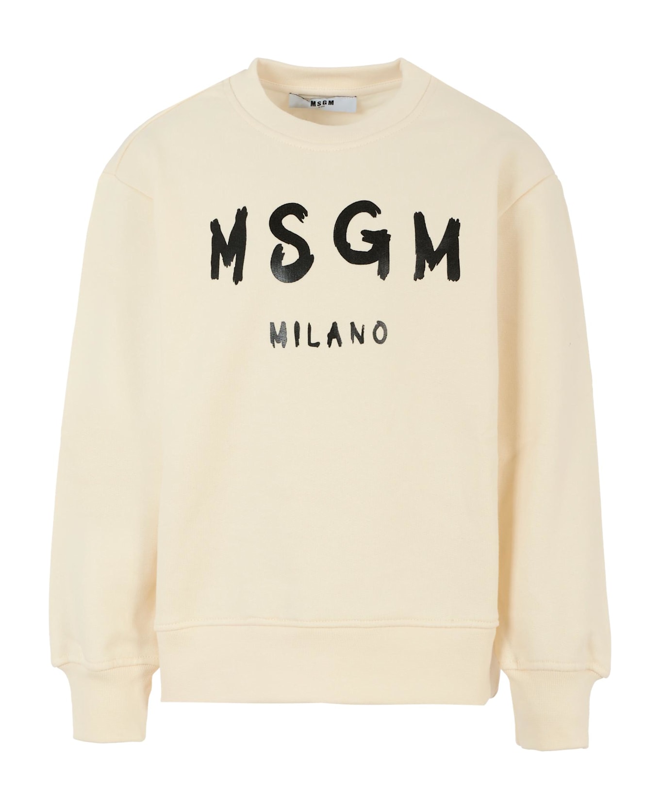 Ivory sweatshirt in fleece cotton, long sleeves, with ribbed crew neck, cuffs and hem. It is embellished with a black MSGM Milano logo on the front.