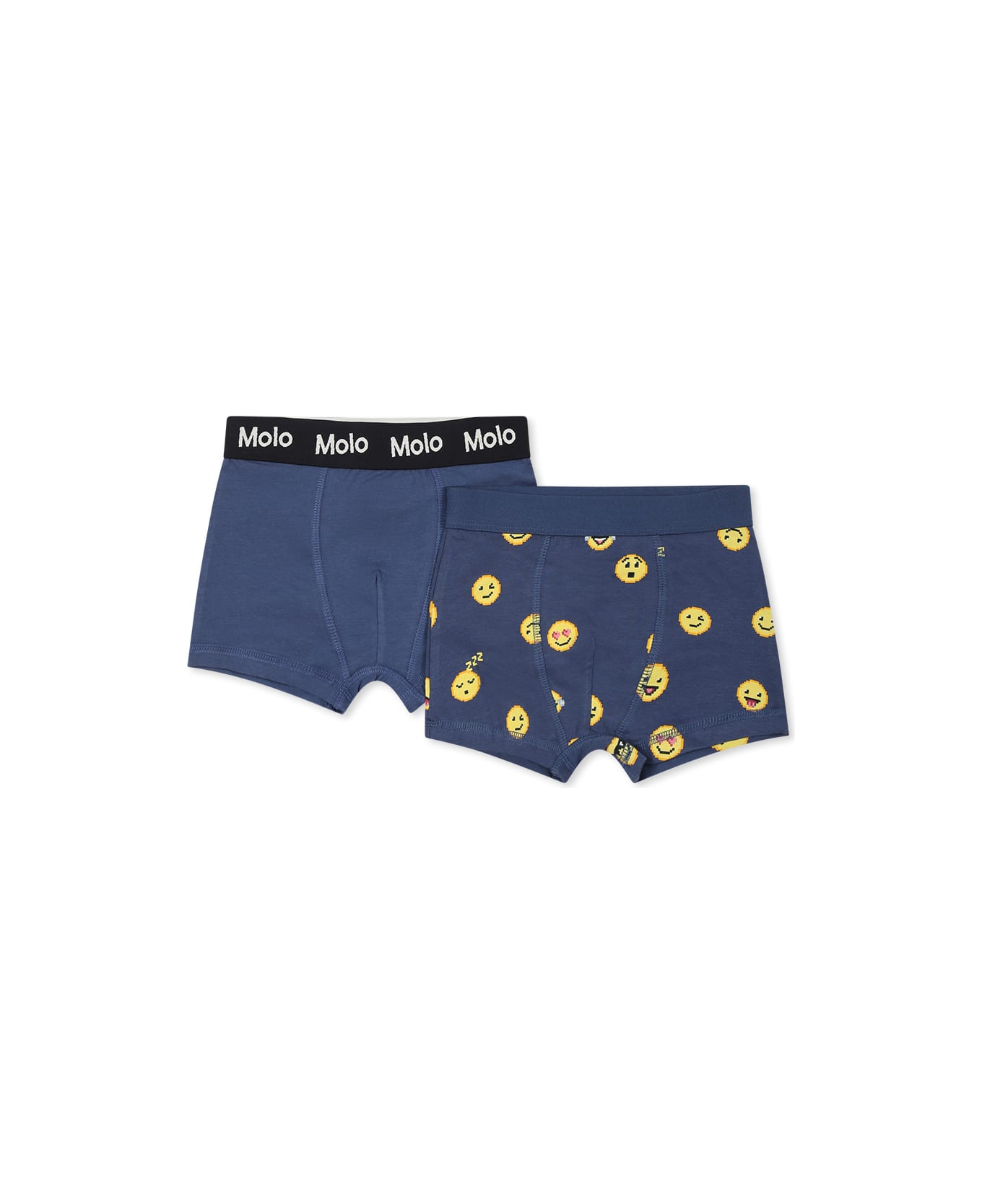 Blue boxers set in GOTS certified organic cotton blend, composed of two boxers, one blue and the other blue with emoji, with elasticated waist.