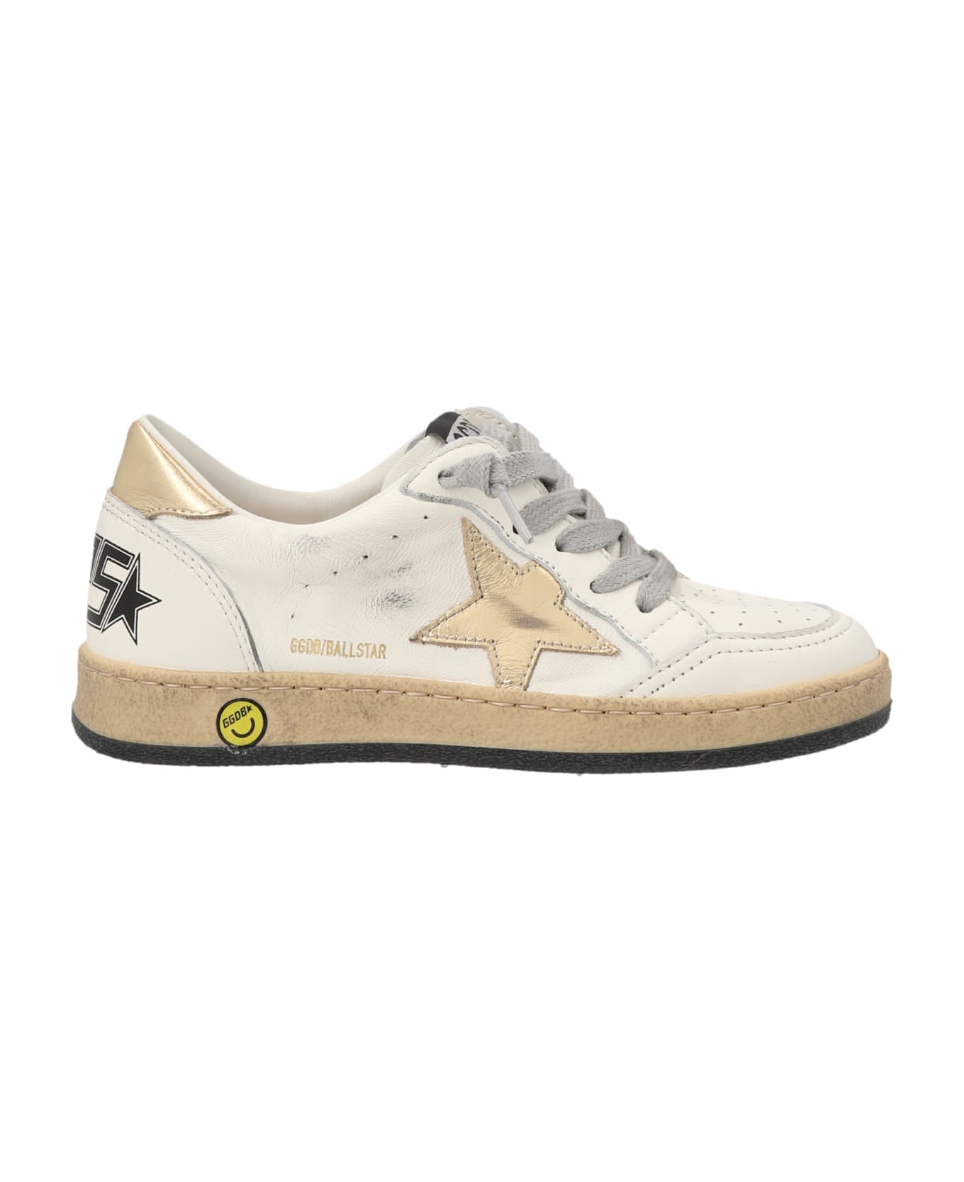 'Ballstar' leather low-top lace-up sneakers with foil star and contrast heel tab. heel tab.