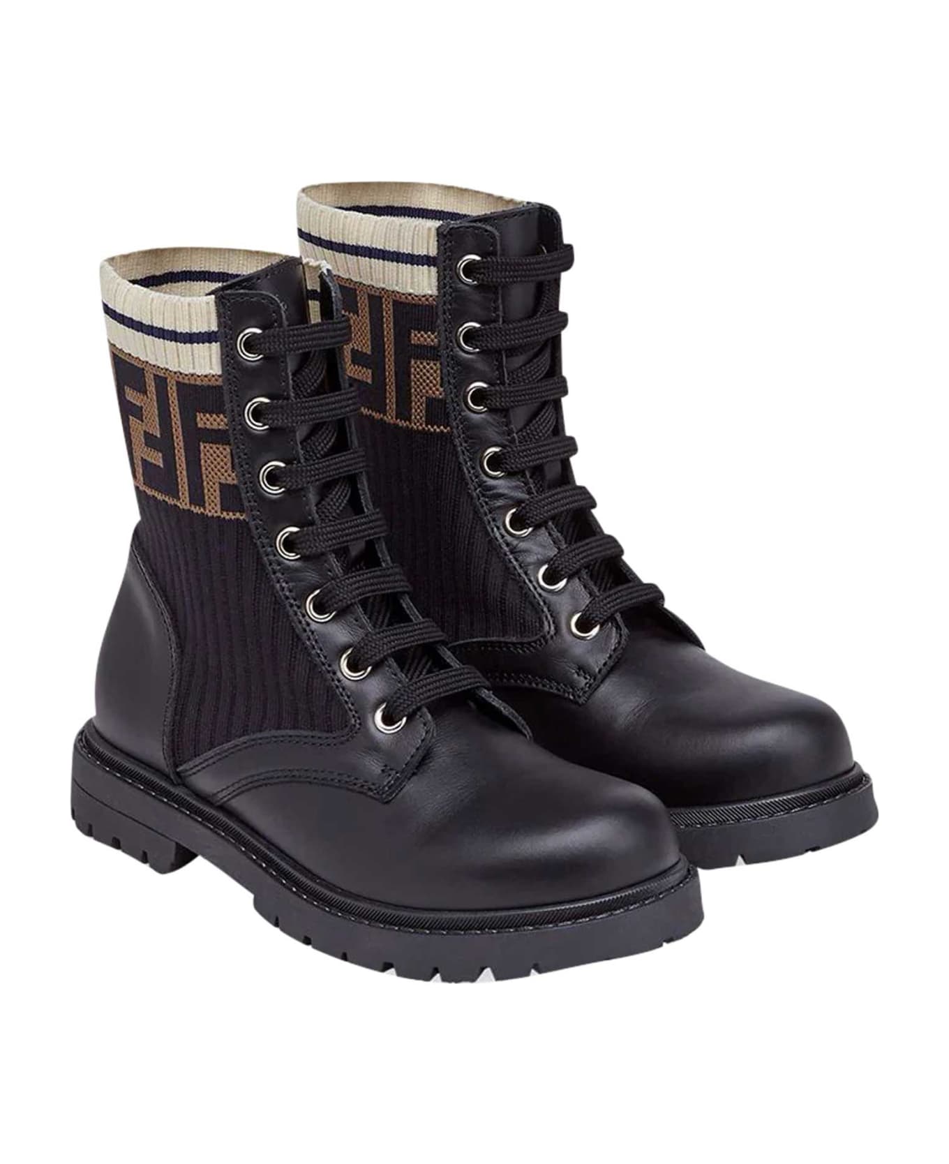 Black boots with round tip and FF band Outside: 100% Leather Lining: 100% Cloth Sole: 100% Rubber