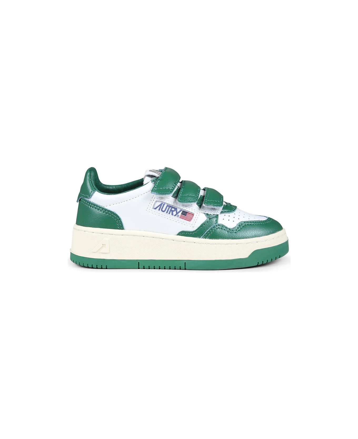 Green leather sneakers, with a comfortable and flexible rubber sole and a hook and loop closure. The model is finished with micro-perforated workmanship on the toe, a padded collar and cotton terry lining for maximum breathability and a feeling of freshness all day long. They are embellished with an iconic side logo.
