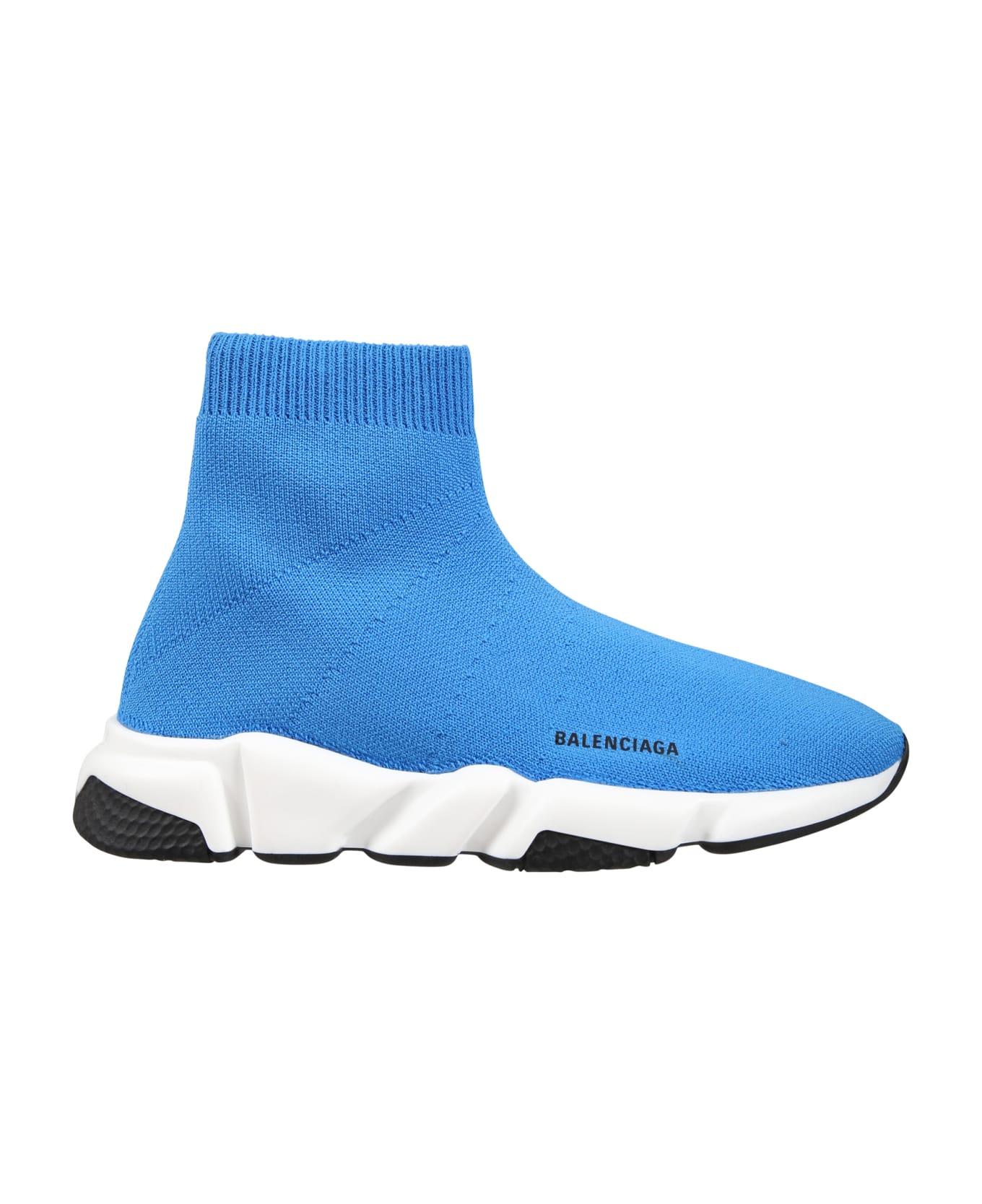 Lighrt blue socks sneakers, with rubbered sole; they are embellished with balck side logo.