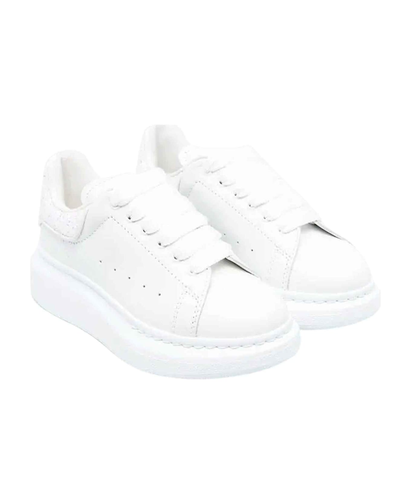 White sneakers unisex Kids. Tongue with printed logo, sequin detail, logo on the heel, front closure with laces, round toe, insole with logo and oversized rubber sole. 100% rubber sole