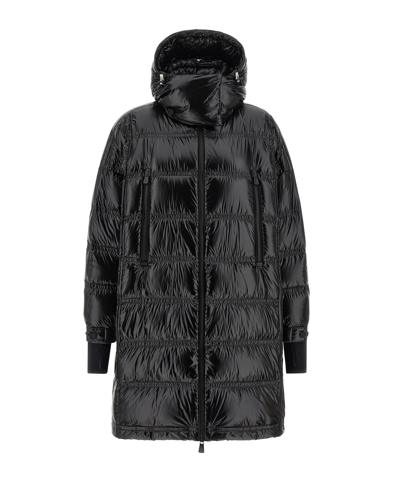 Long 'Rochelairs' down jacket in ultra-light water-repellent quilted nylon laqué with goose down padding, adjustable and removable hood, high neck, YKK® AquaGuard® Highly Water-Resistant 2-way zip closure on the front, pockets, long sleeves with elastic cuffs, windproof gaiter, dropped shoulder and logo patch appliqué, drawstring on the hem.