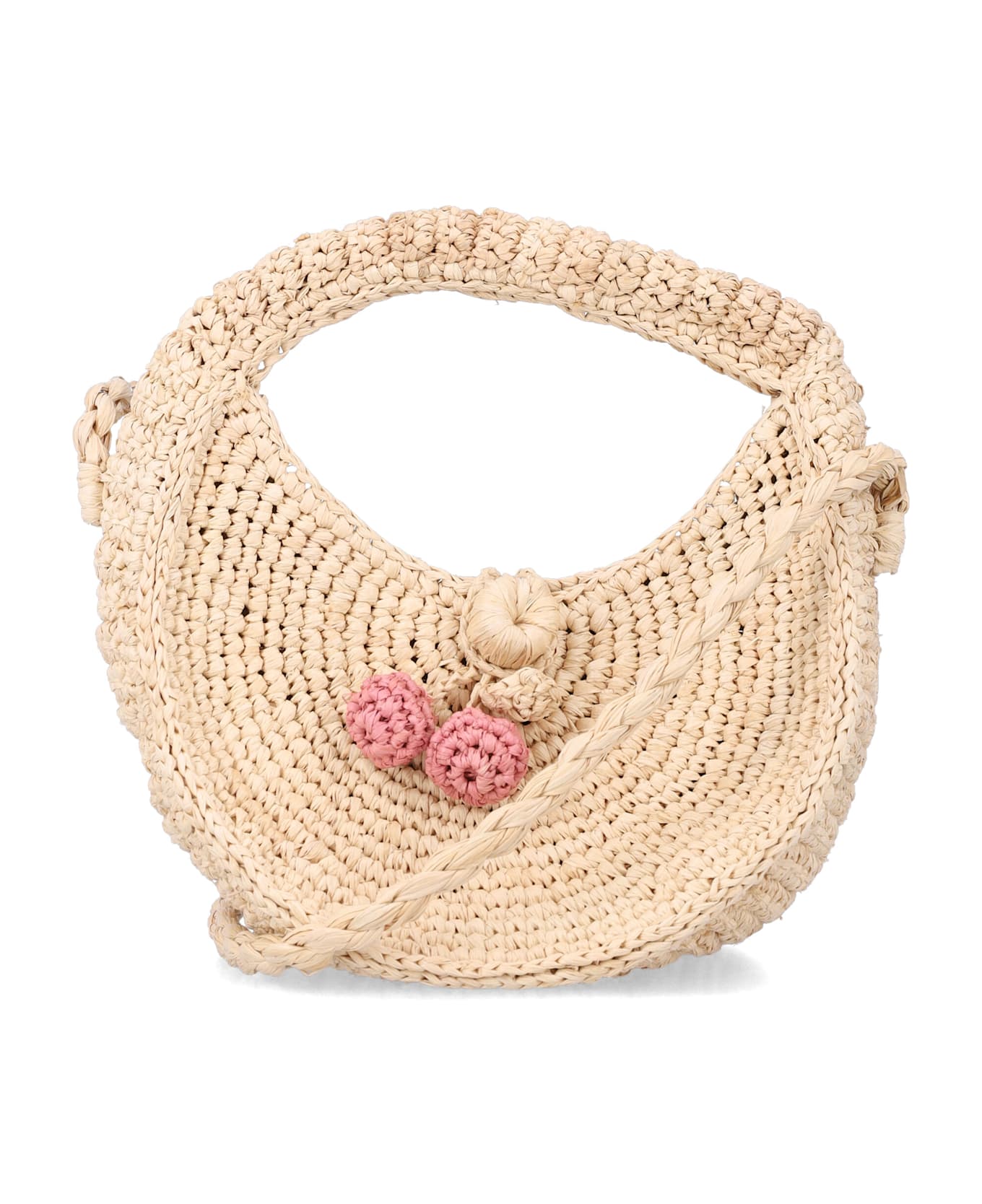The Loulou Bag By Bonpoint Is A Beautifully Hand-braided Accessory For Girls. Its Round Cut-out Shape Forms A Playful Handle, Complemented By A Slim Shoulder Strap For Versatile Wear. Crafted From Natural Raffia, It Features A Contrasting Cherry Detail For A Charming Touch. Round Cut-out Handle