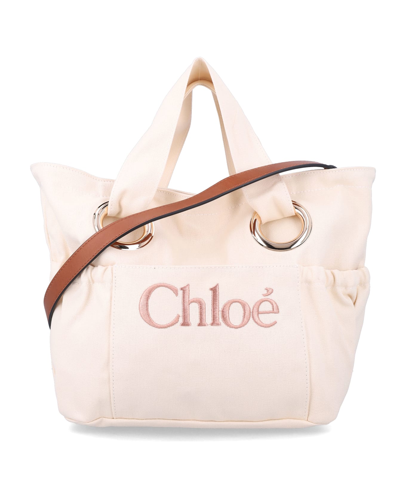 Made From Organic Cotton Canvas, The Chloé Kids Tote Bag Offers A Lightweight, Practical Design With Refined Details. Featuring A Contrasting Leather Strap, Embroidered Logo, And Elasticated Side Pockets, It Combines Style And Functionality For Everyday Use. 2 Top Handles